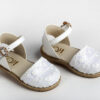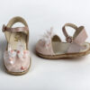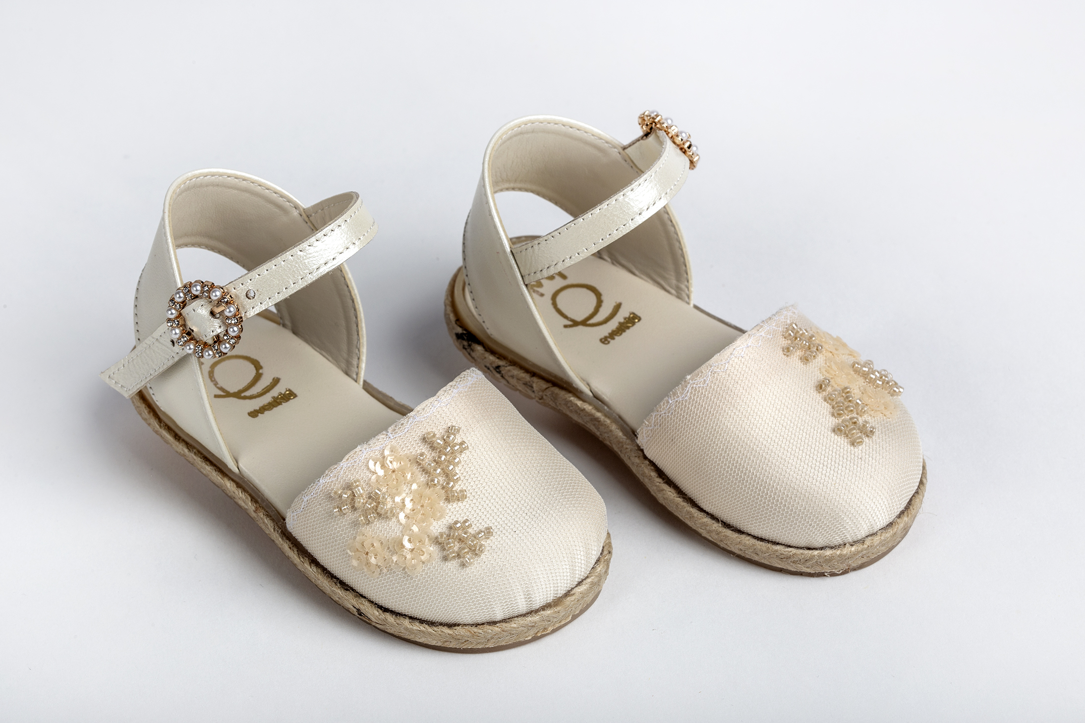 Εσπαντρίγια σε σομόν σατέν και εκρού δέρμα everkid Κ554Ε