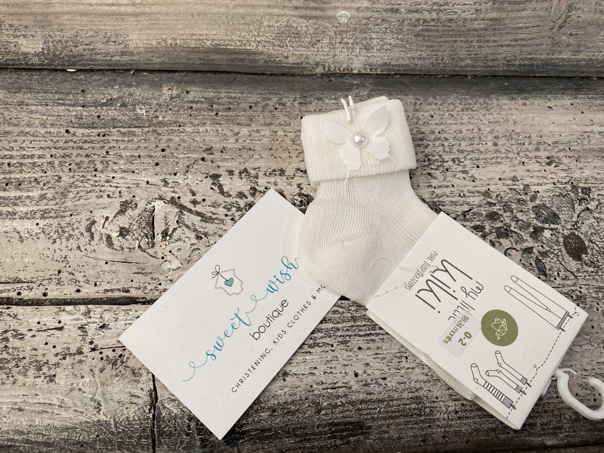 Καλτσάκια βαπτιστικά για κορίτσι ιβουάρ με πεταλούδα