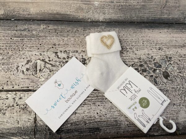 Καλτσάκια βαπτιστικά για κορίτσι με χρυσή καρδούλα