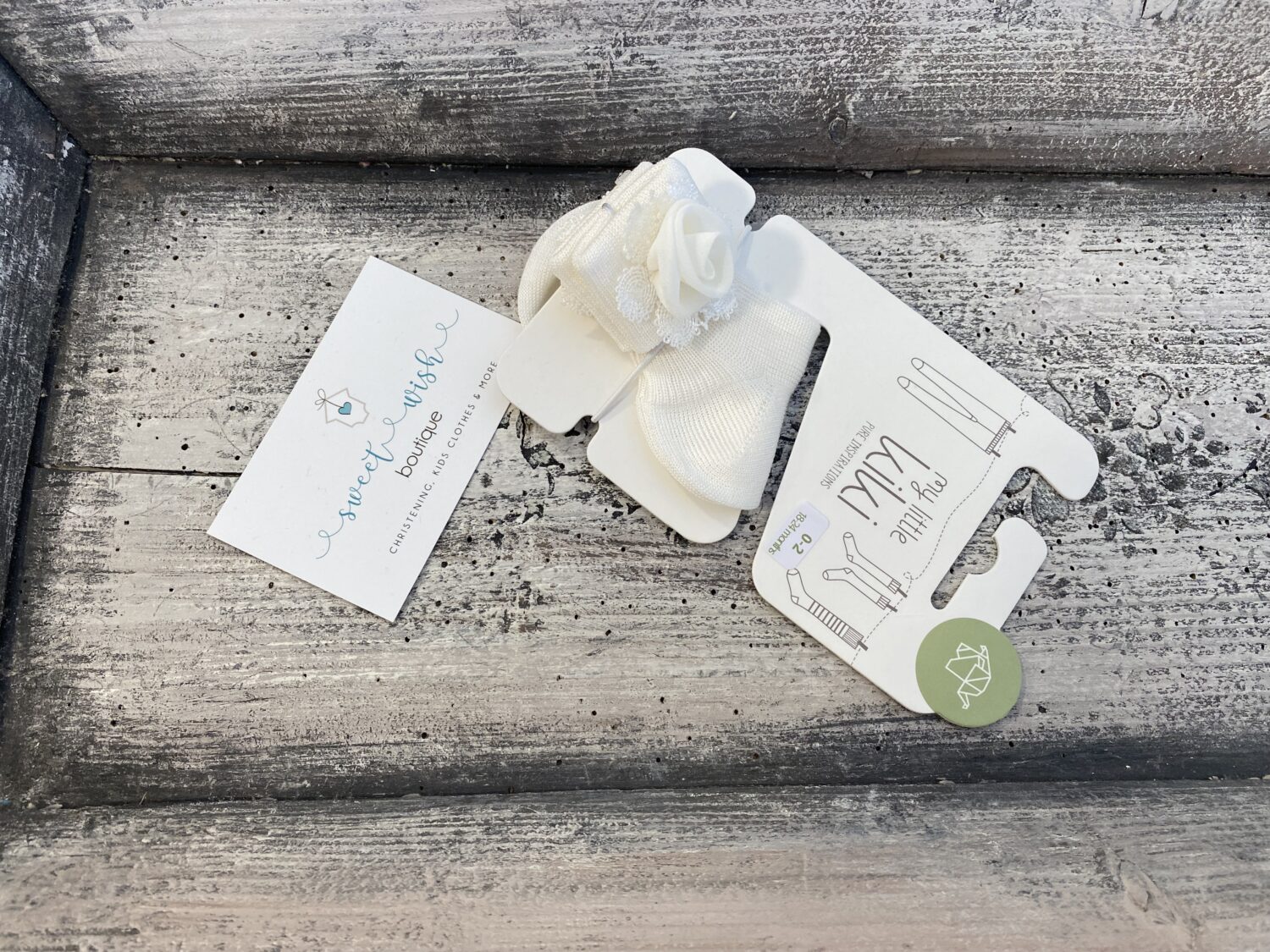 Καλτσάκια βαπτιστικά για κορίτσι με δαντέλα και λουλούδι