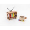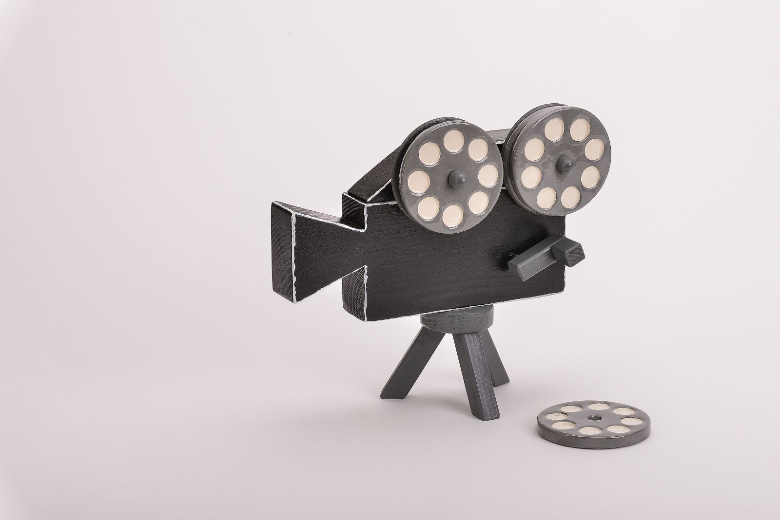 Σετ 4 κεραμικά σουβέρ με ξύλινη βάση βιντεοκάμερα σε μαύρο χρώμα.