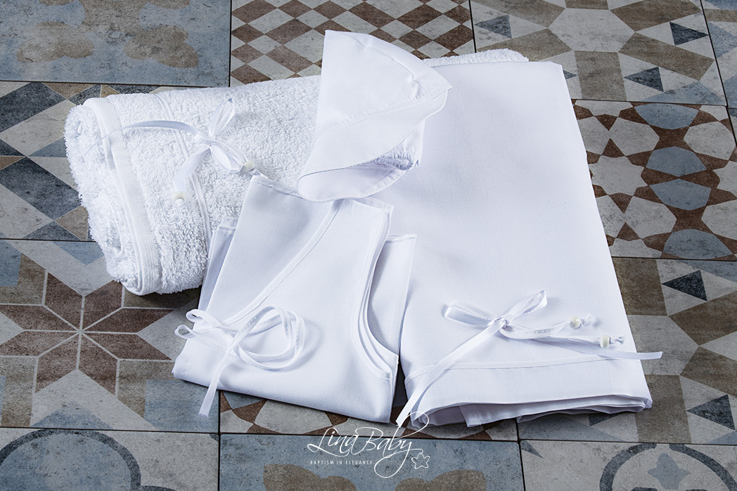 Το σετ περιλαμβάνει πετσέτα , το λαδόπανο, μικρή πετσέτα , τα εσώρουχα και το καπελάκι.