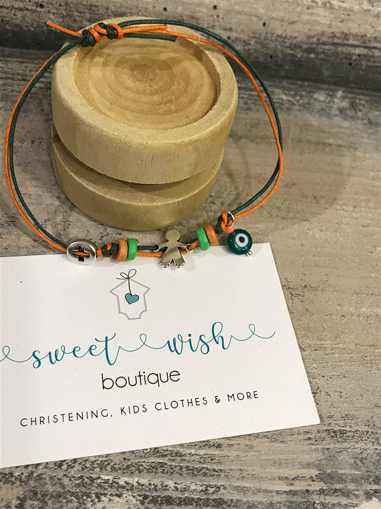 Μαρτυρικό με διακοσμητικό μεταλλικό αγοράκι και περαστό σταυρουδάκι.