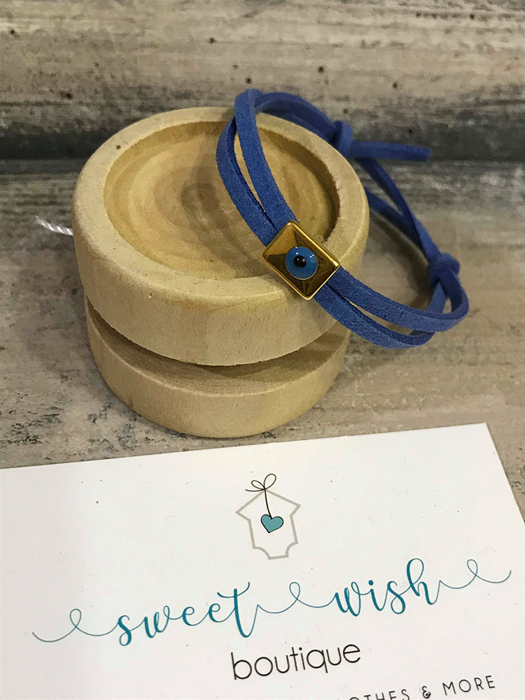Μαρτυρικό σουέτ σε μπλε σκούρο χρώμα με περαστό μεταλλικό ματάκι.