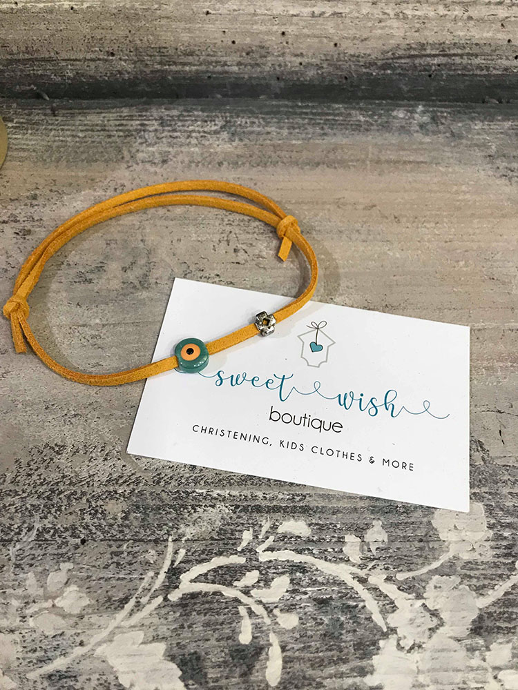 Μαρτυρικό σουέτ βραχιολάκι με κεραμικό ματάκι