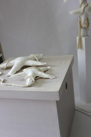 Το σετ περιλαμβάνει χειροποίητο ξύλινο κουτί σε σχήμα κύβου βαμμένο στο χρώμα του αμύγδαλου, και δύο υφασμάτινους αστερίες, λαμπάδα και λαδοσέτ στο ίδιο θέμα.