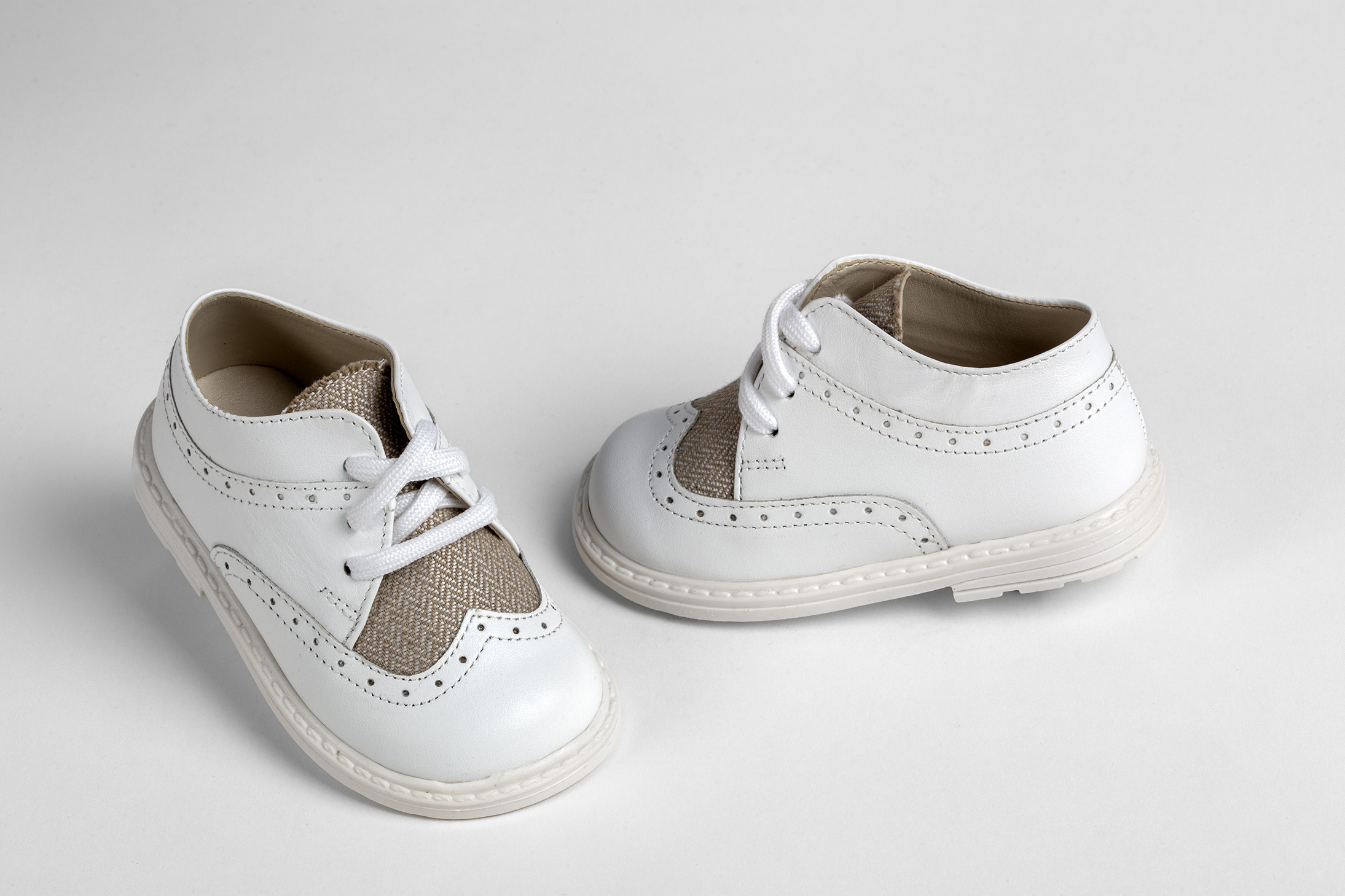 Παπούτσι περπατήματος τύπου brogues σε λευκό δέρμα και μπεζ ύφασμα everkid Α532Α .