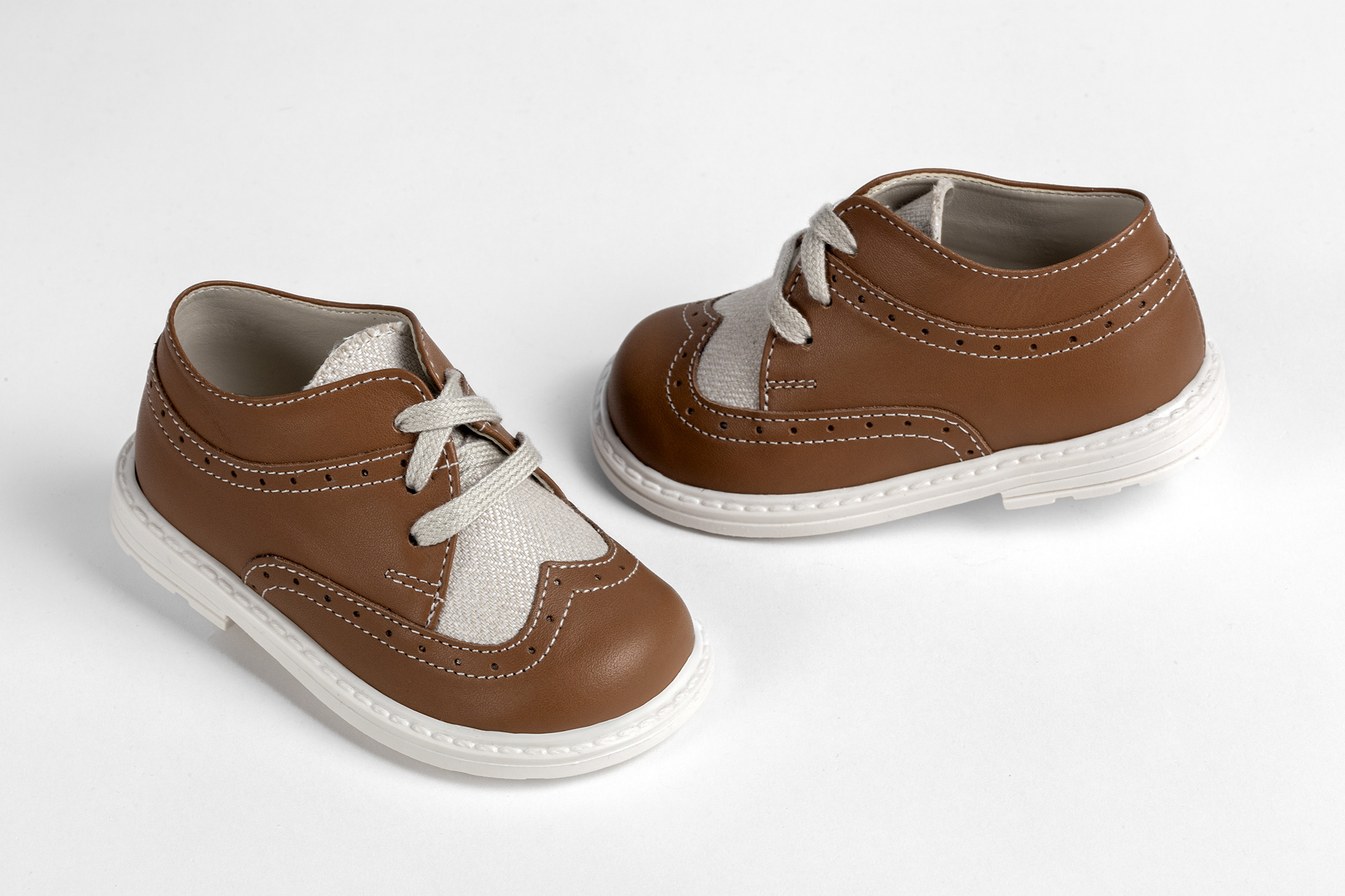 Παπούτσι περπατήματος τύπου brogues σε ταμπα δέρμα και μπεζ ύφασμα everkid Α532Τ.