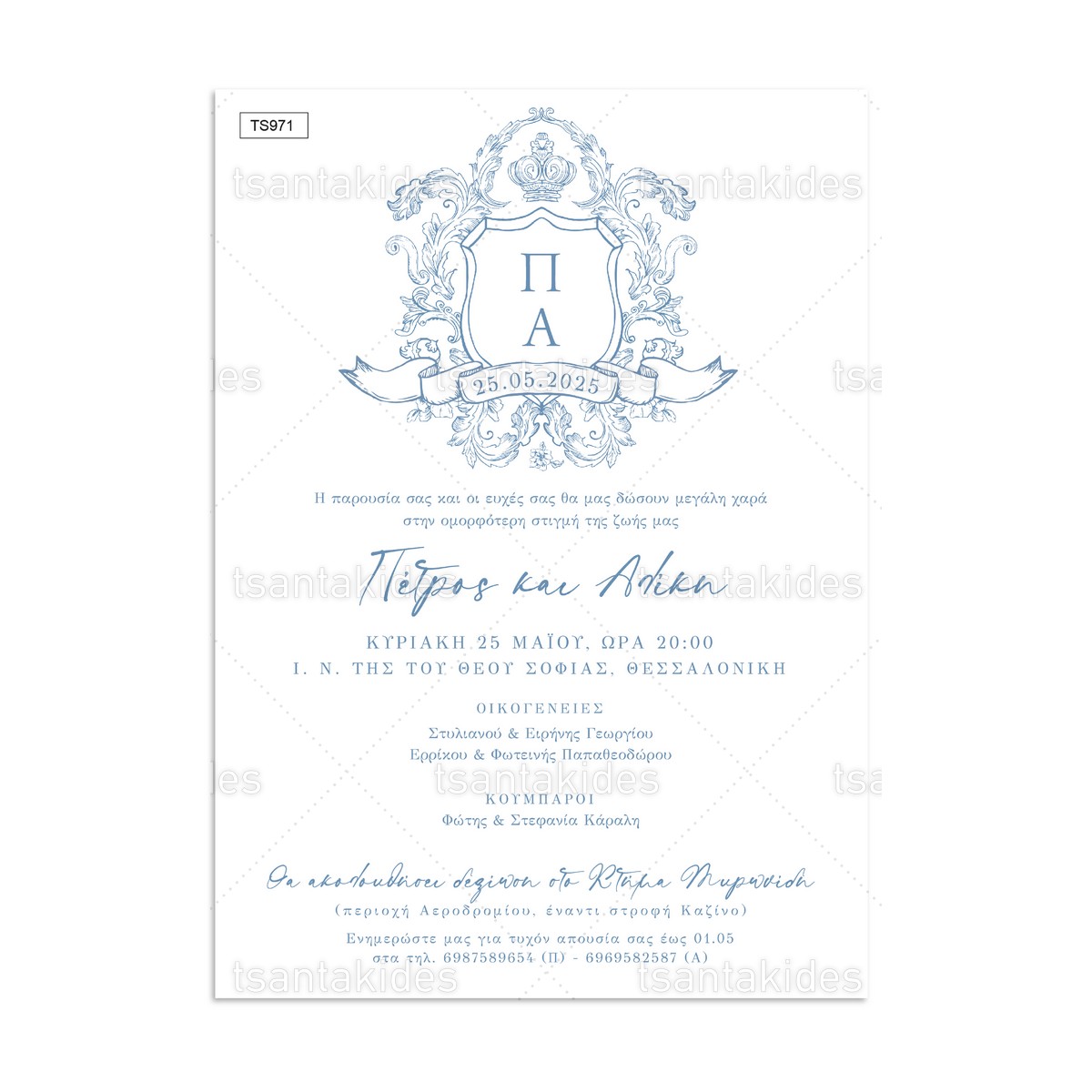 Προσκλητήριο γάμου με θέμα Crest- οικόσημο.