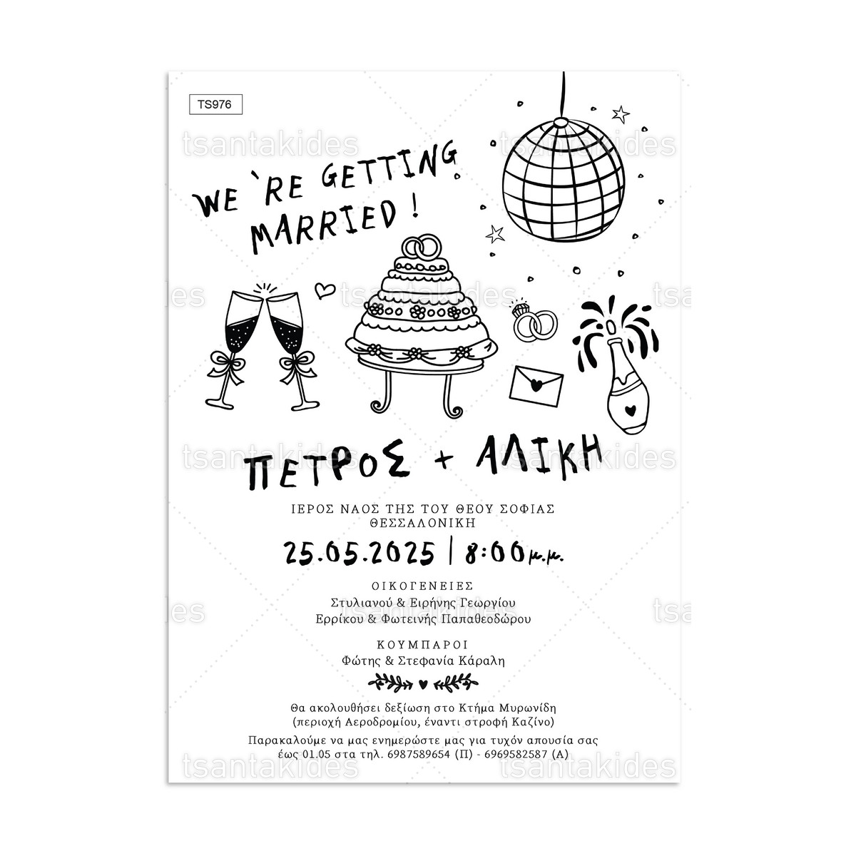 Προσκλητήριο γάμου με θέμα Disco Party.