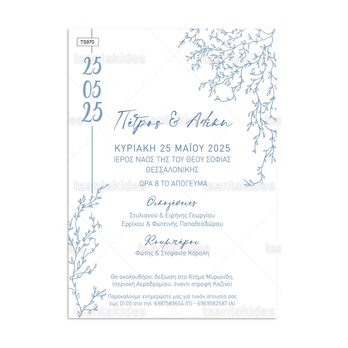 Προσκλητήριο γάμου με θέμα Elegant Blue Floral.