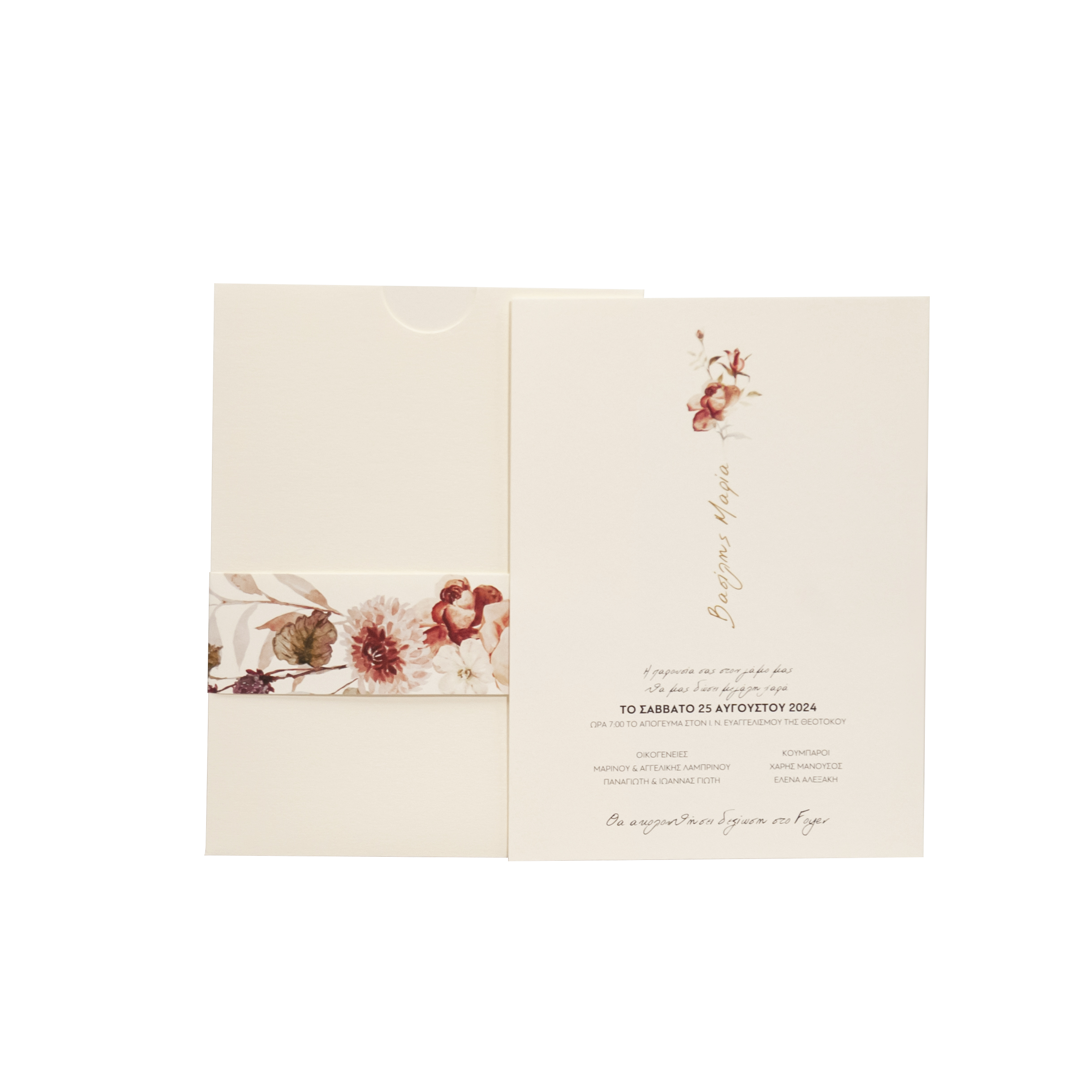 Προσκλητήριο γάμου λουλούδια σε μπορντώ αποχρώσεις.