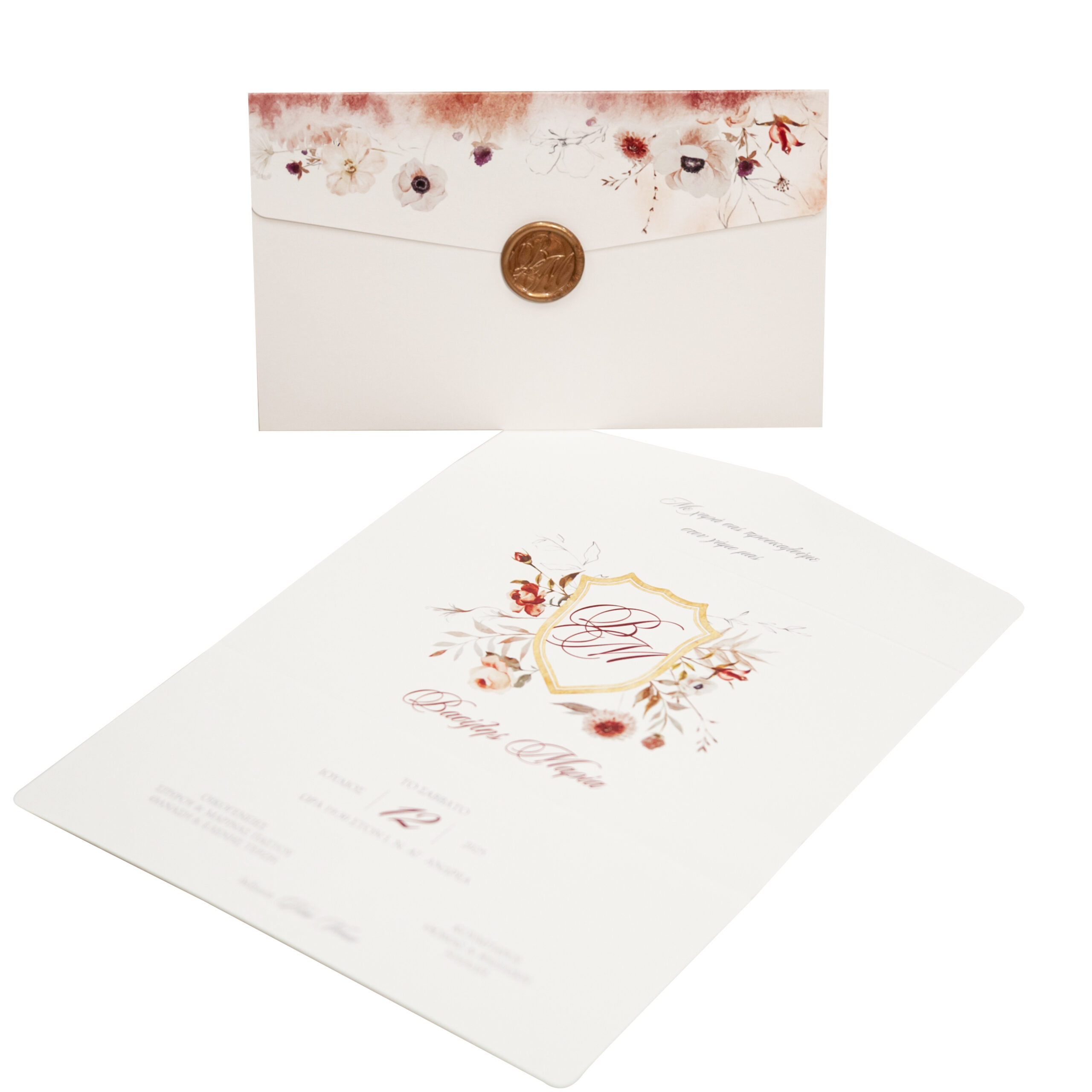 Προσκλητήριο γάμου με λουλούδια κάρτα φάκελος.
