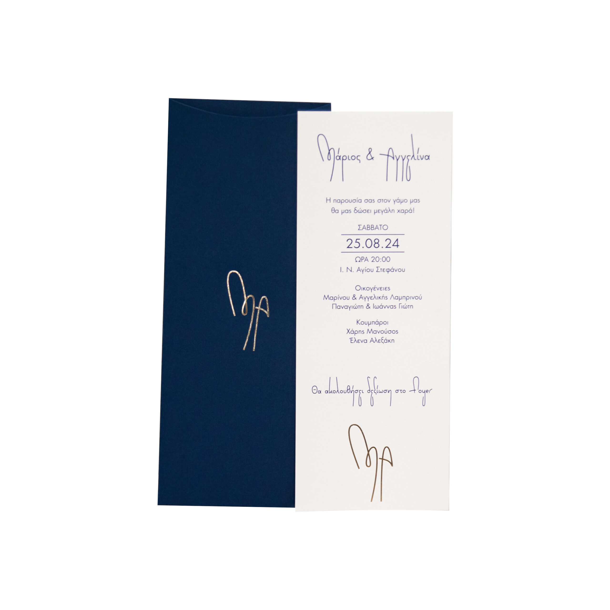 Προσκλητήριο γάμου με μονογράμματα και εκτύπωση στον φάκελο