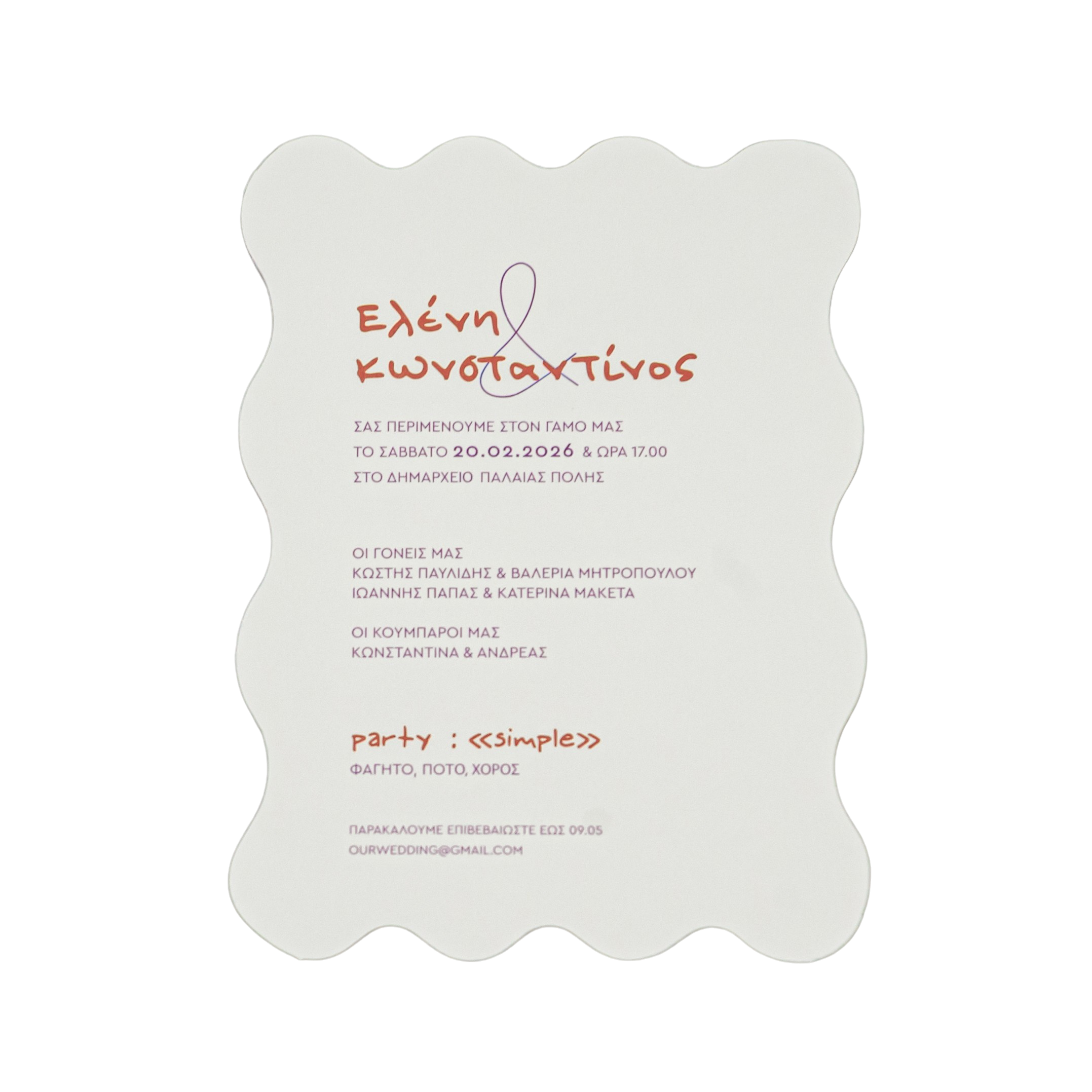 Μοντέρνο προσκλητήριο γάμου με minimal σχεδιασμό και καθαρές γραμμές, που αποπνέει κομψότητα και σύγχρονη αισθητική.