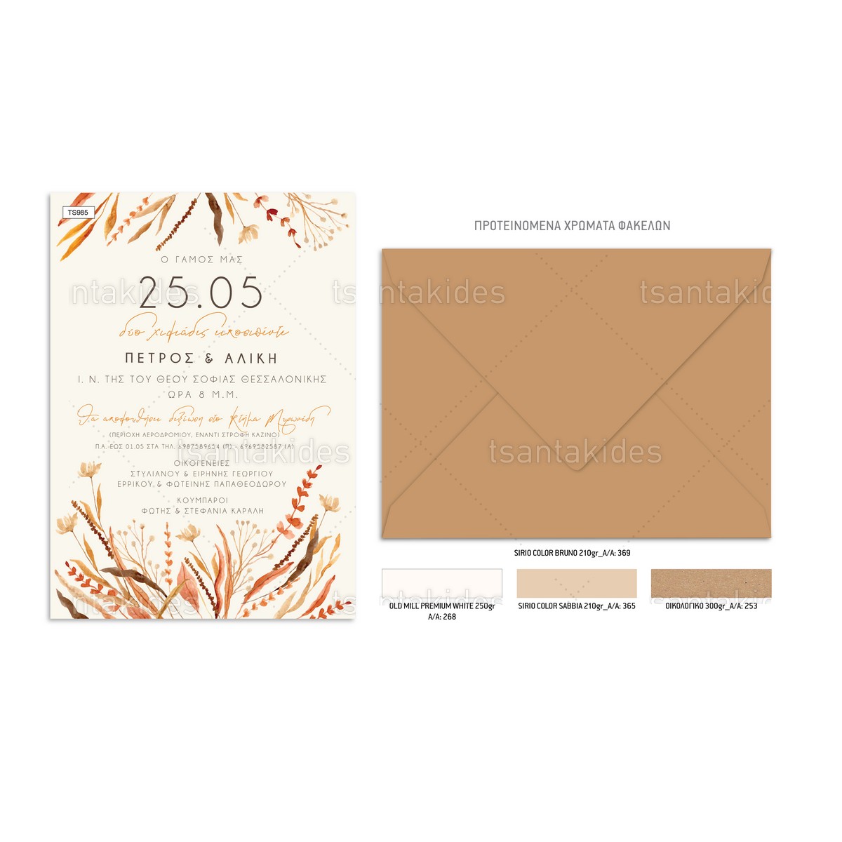 Προσκλητήριο γάμου με θέμα αποξηραμένα φυτά