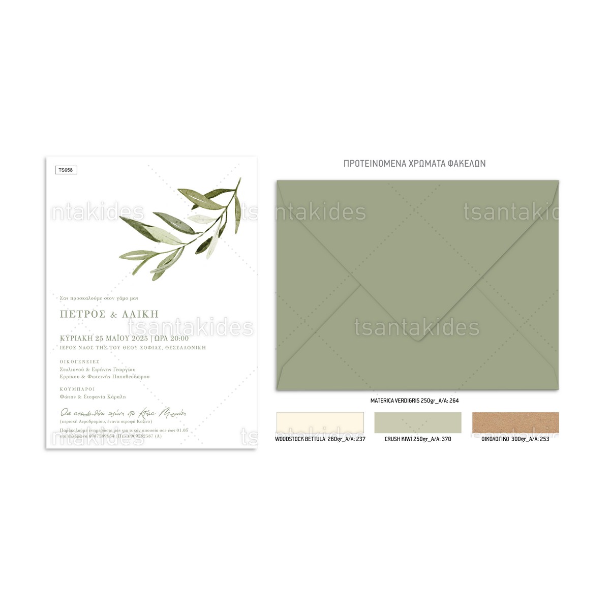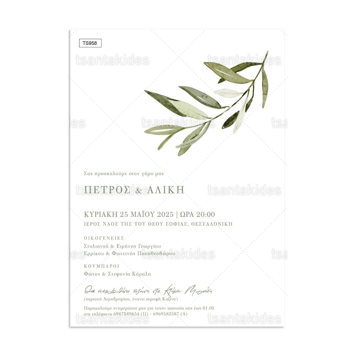 Προσκλητήριο γάμου με θέμα Olive Branch.