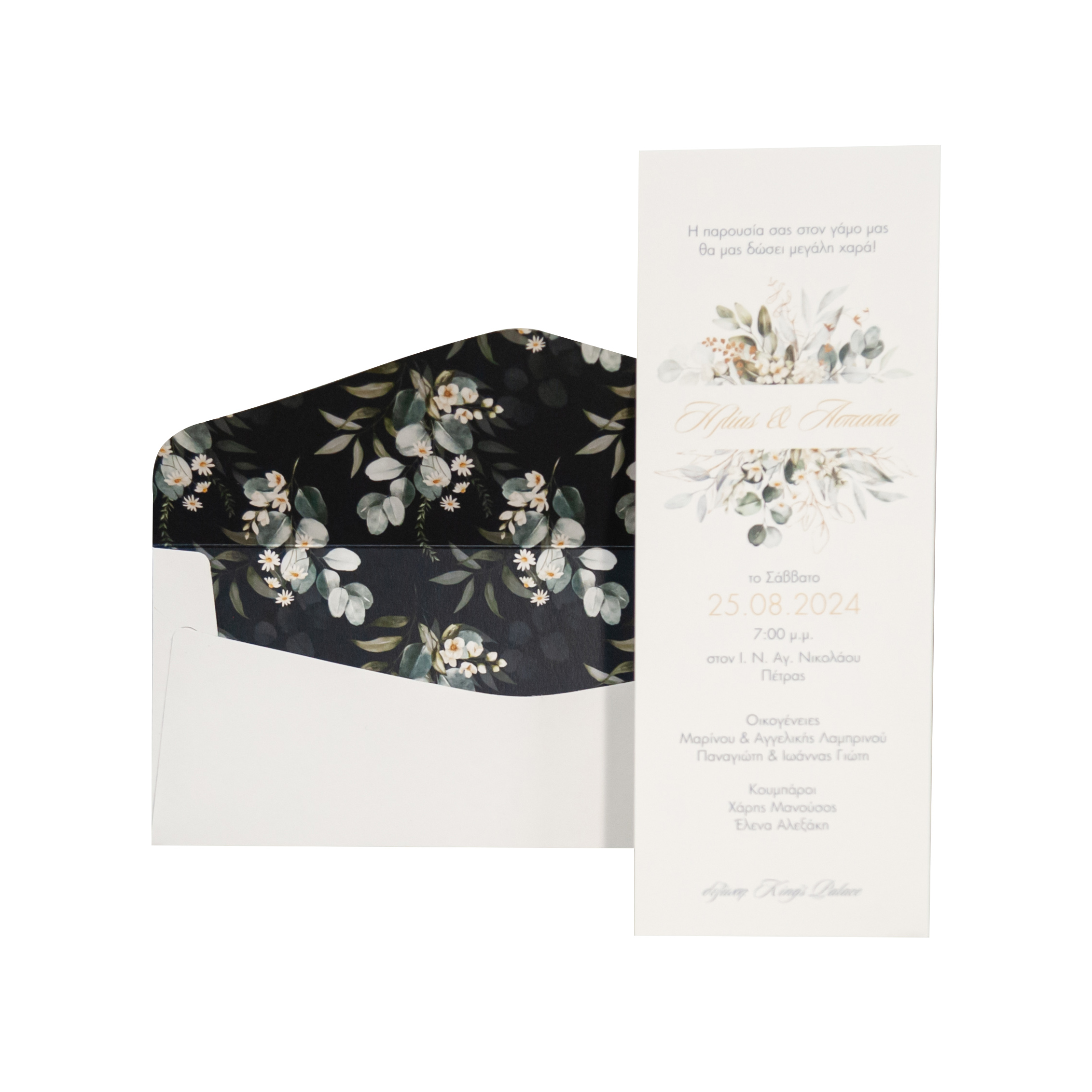Προσκλητήριο γάμου με θέμα λουλούδια.