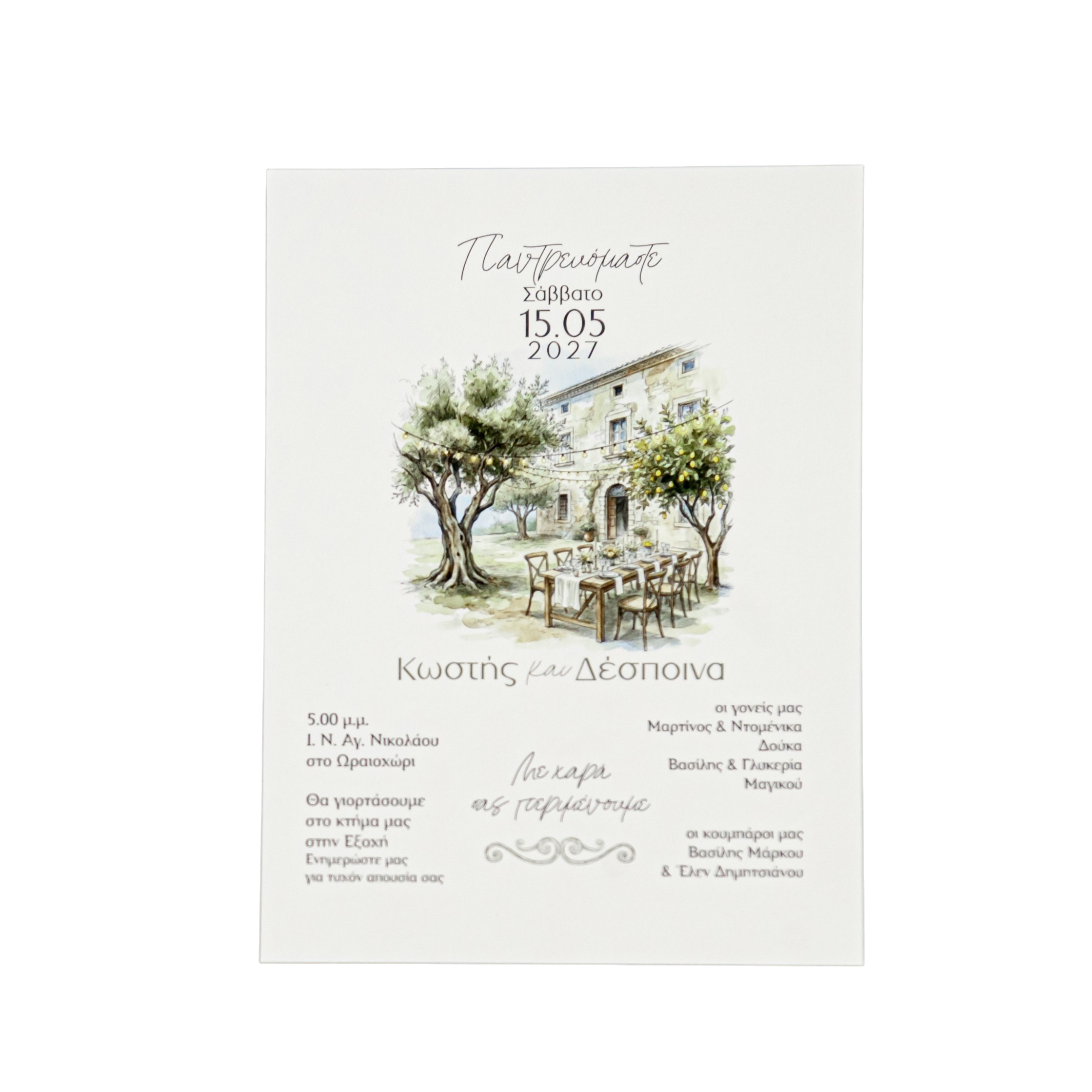 Παραδοσιακό προσκλητήριο με έμφαση στα ελληνικά έθιμα, την οικογένεια και τη διαχρονική αξία της ένωσης, σε ύφος ζεστό και αυθεντικό.