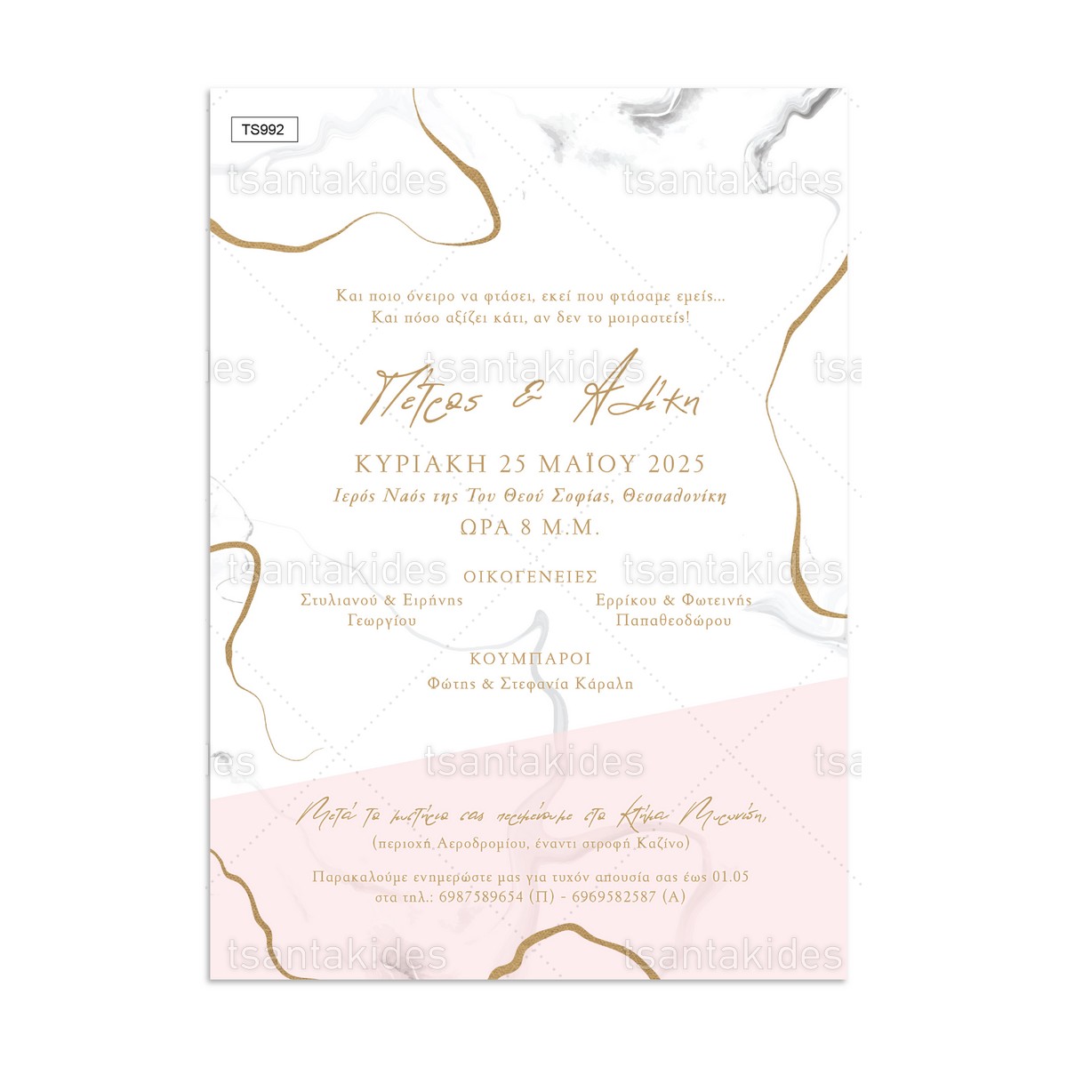 Προσκλητήριο γάμου με θέμα Pink Marble.