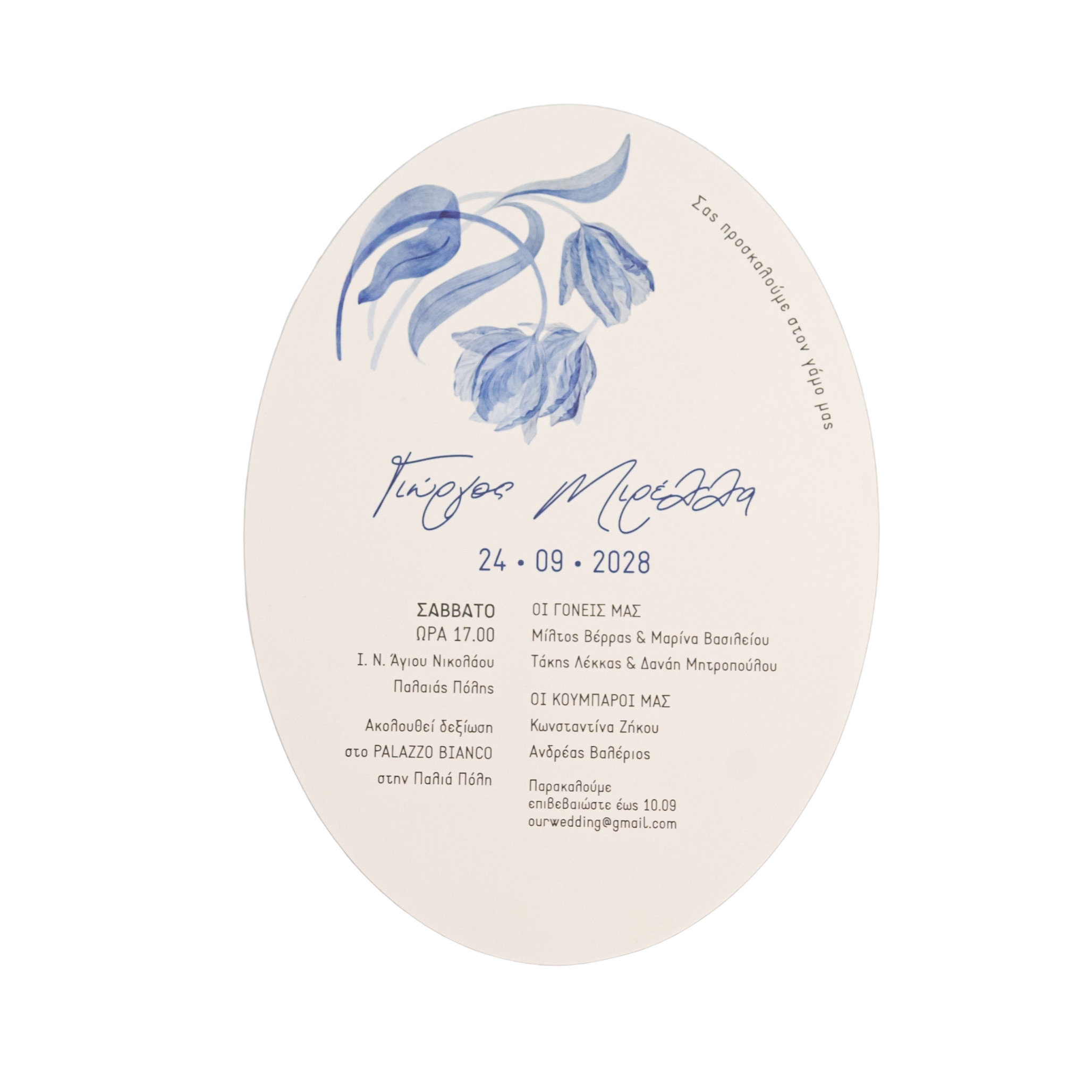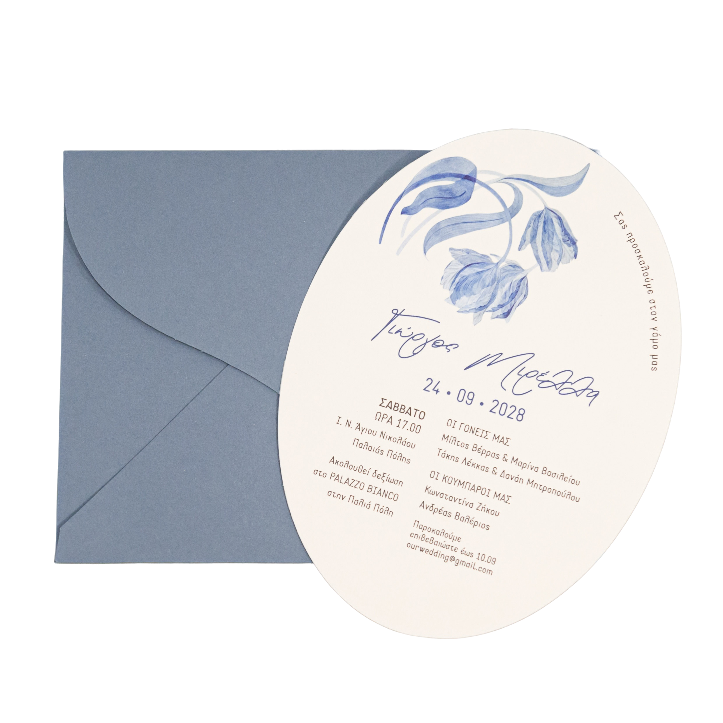 Προσκλητήριο γάμου μινιμαλ σε μπλε αποχρώσεις