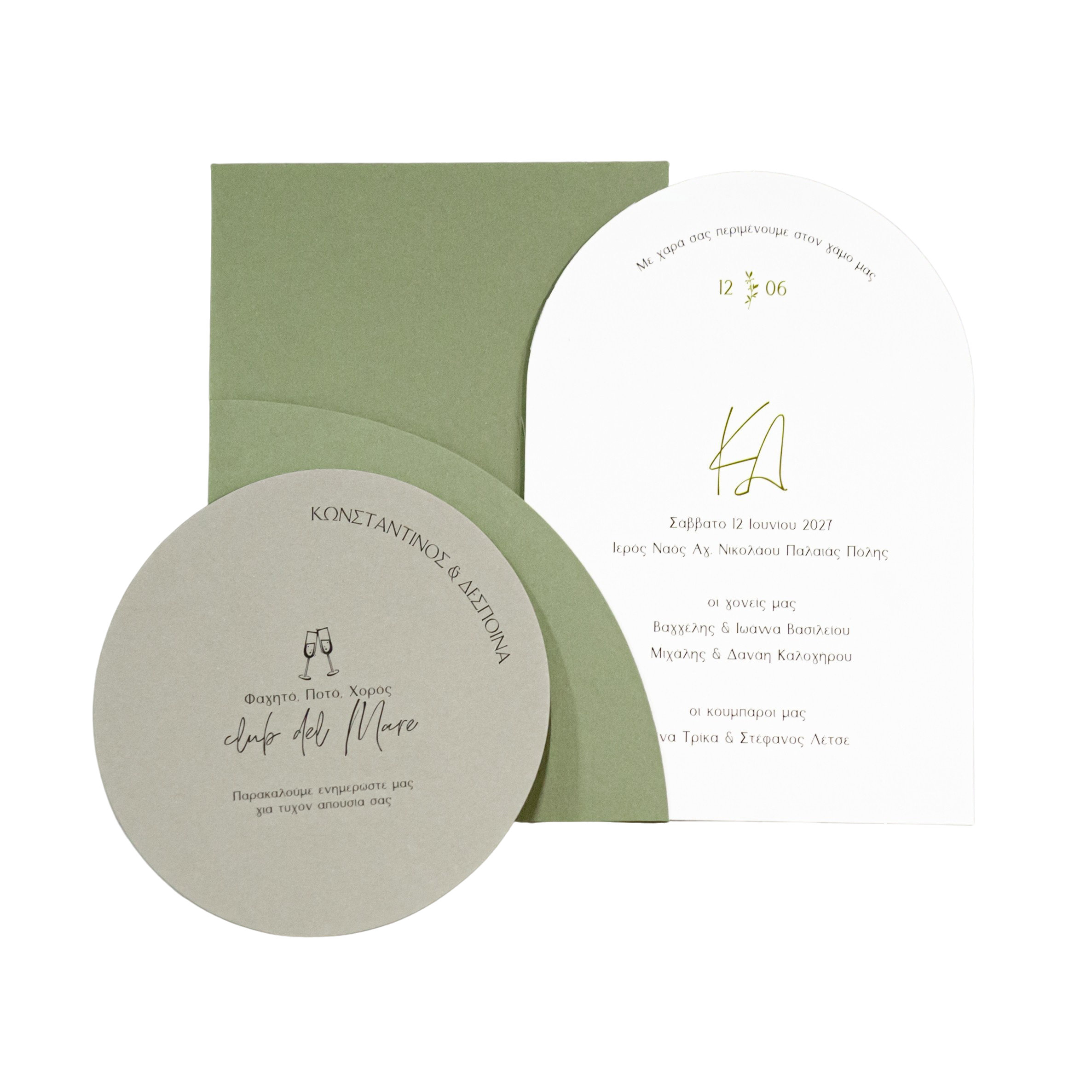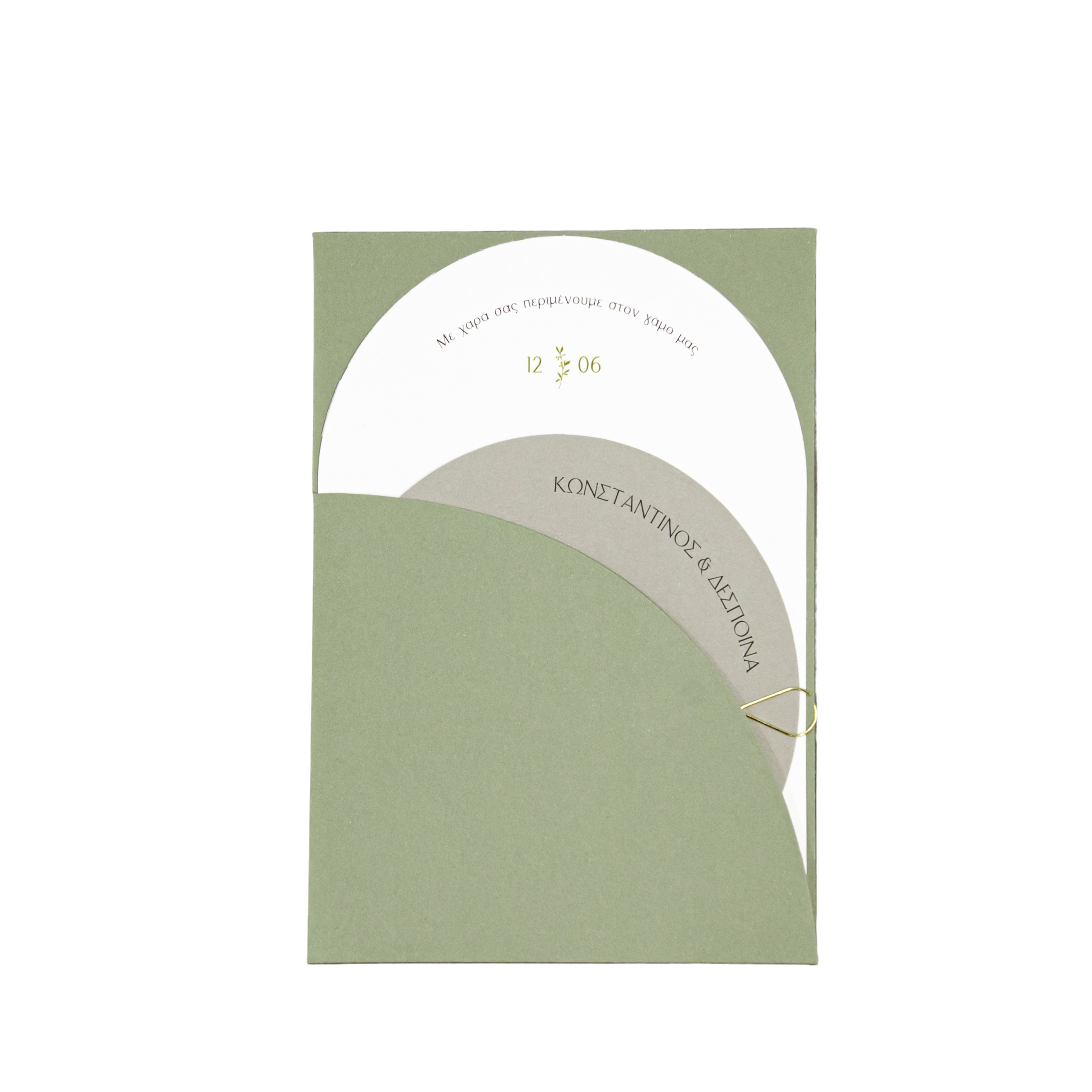 Κομψό προσκλητήριο γάμου σε γήινες και γκρι αποχρώσεις, που συνδυάζει τη ζεστασιά της φύσης με τη μοντέρνα αισθητική.