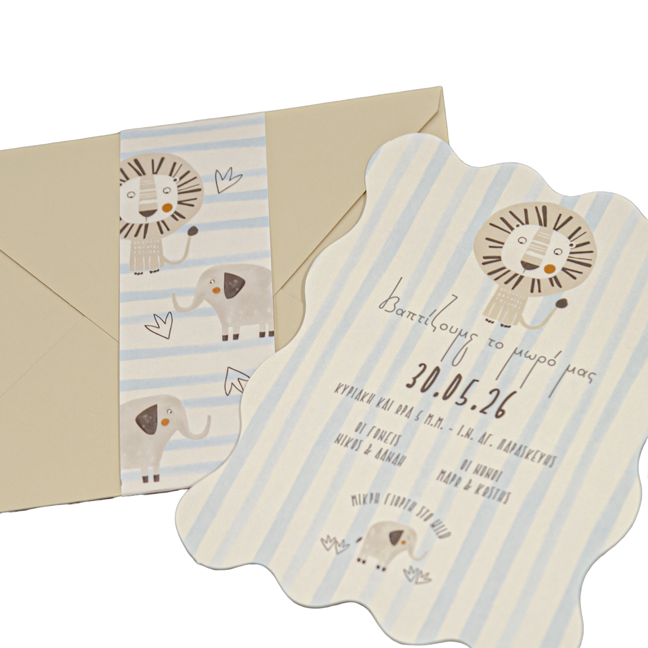 Προσκλητήριο βάπτισης για αγόρι με θέμα λιονταράκι
