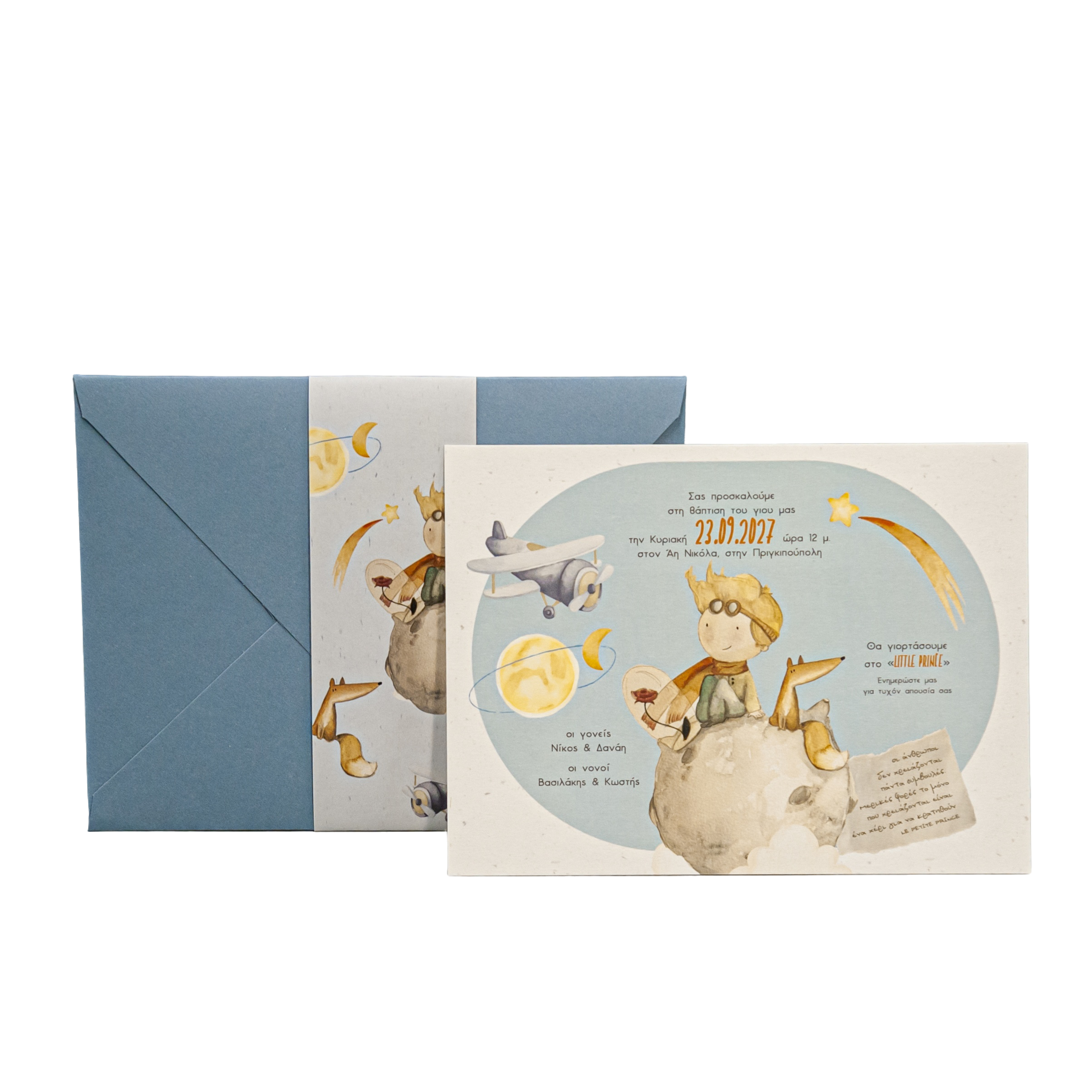 Προσκλητήριο βάπτισης για αγόρι με θέμα μικρός πρίγκιπας
