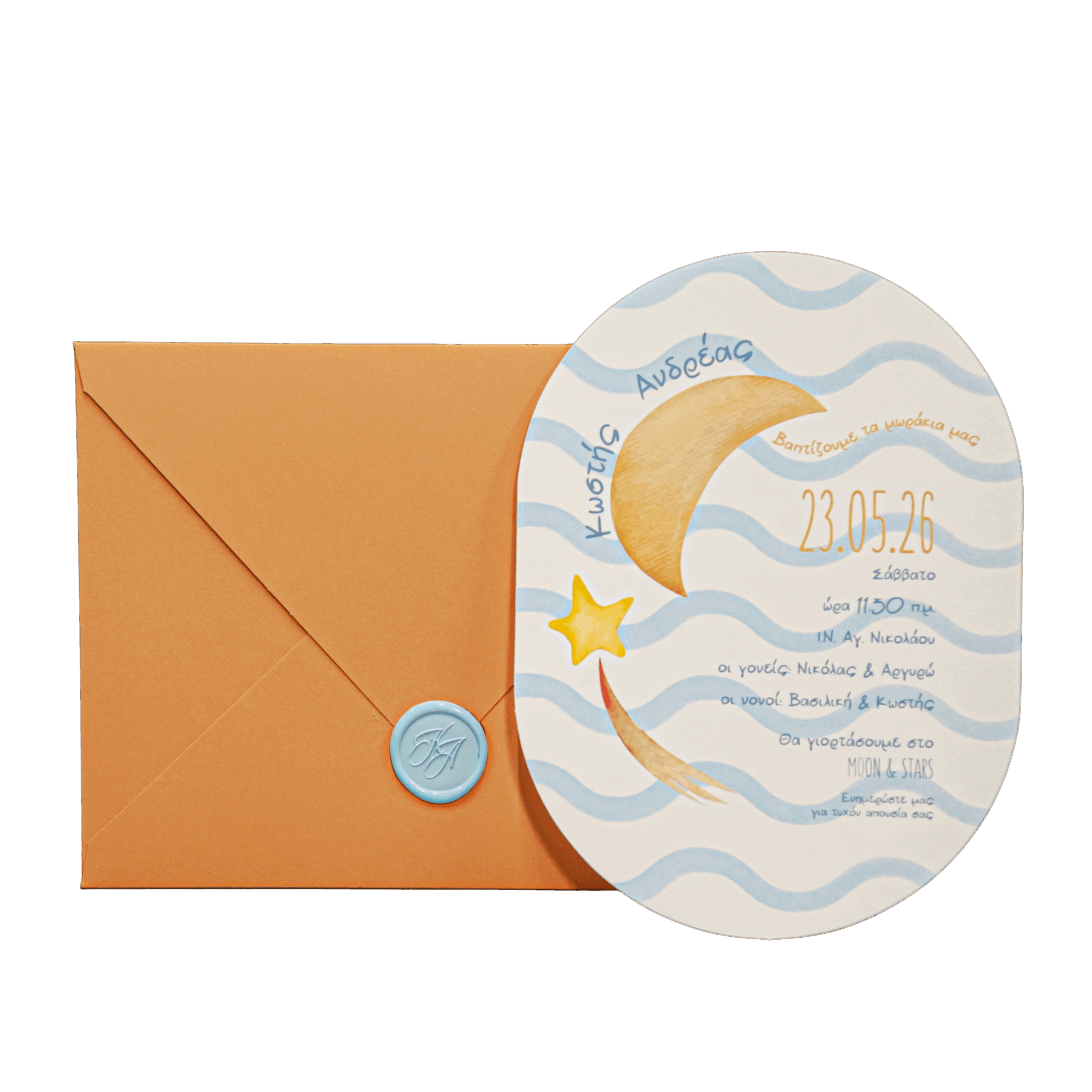 Προσκλητήριο βάπτισης για αγόρι με θέμα φεγγαράκι