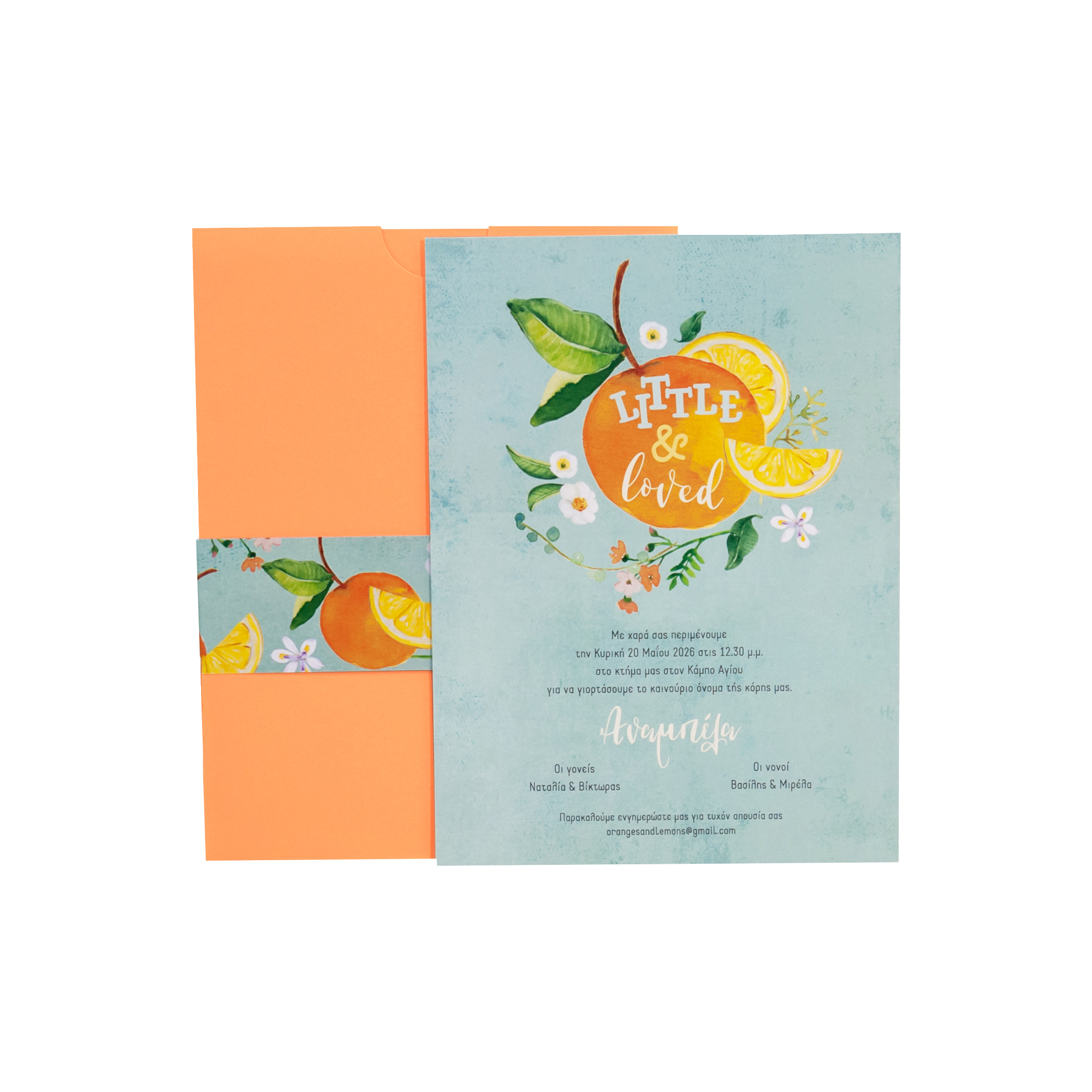 Προσκλητήριο βάπτισης για κορίτσι με θέμα λεμόνι