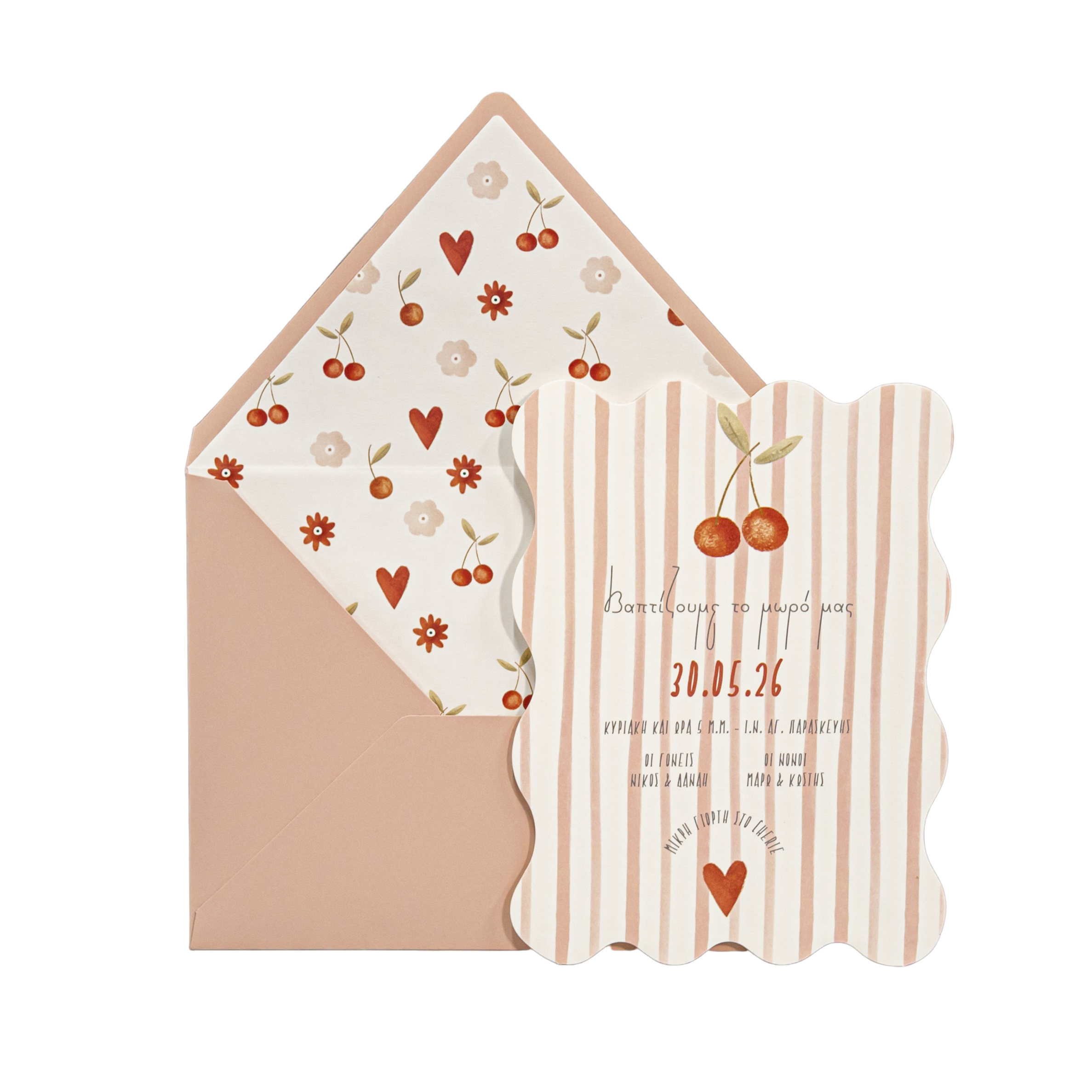 Προσκλητήριο βάπτισης για κορίτσι με θέμα κεράσια.