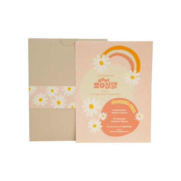Προσκλητήριο βάπτισης για κορίτσι με θέμα μαργαρίτα