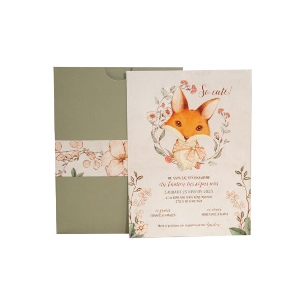 Προσκλητήριο βάπτισης για κορίτσι με θέμα αλεπού