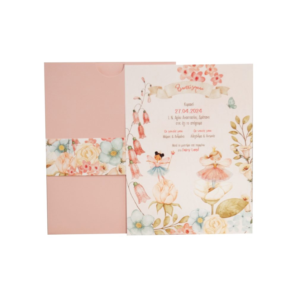 Προσκλητήριο βάπτισης για κορίτσι με θέμα νεράιδα