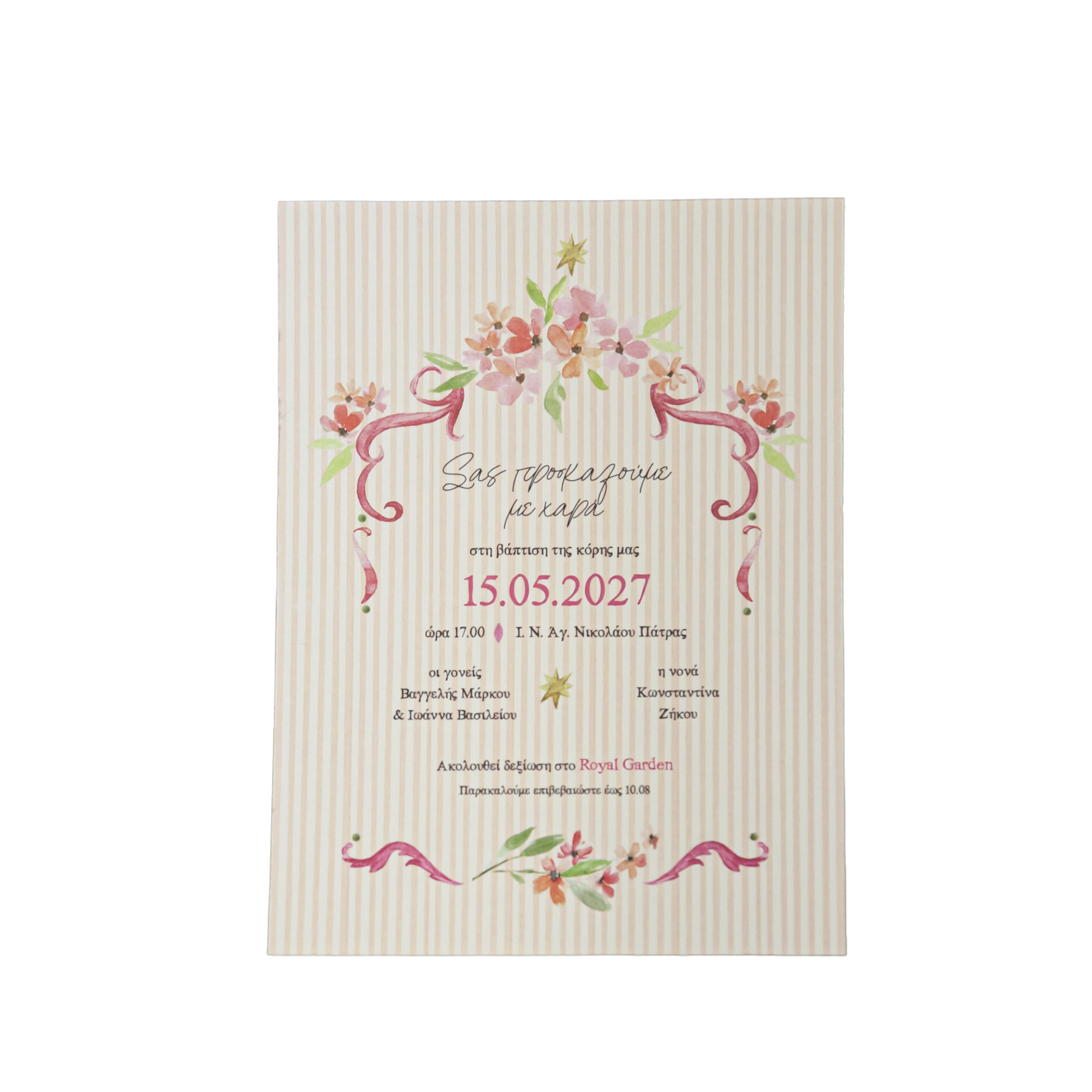 Προσκλητήριο βάπτισης για κορίτσι με θέμα έντονα λουλούδια