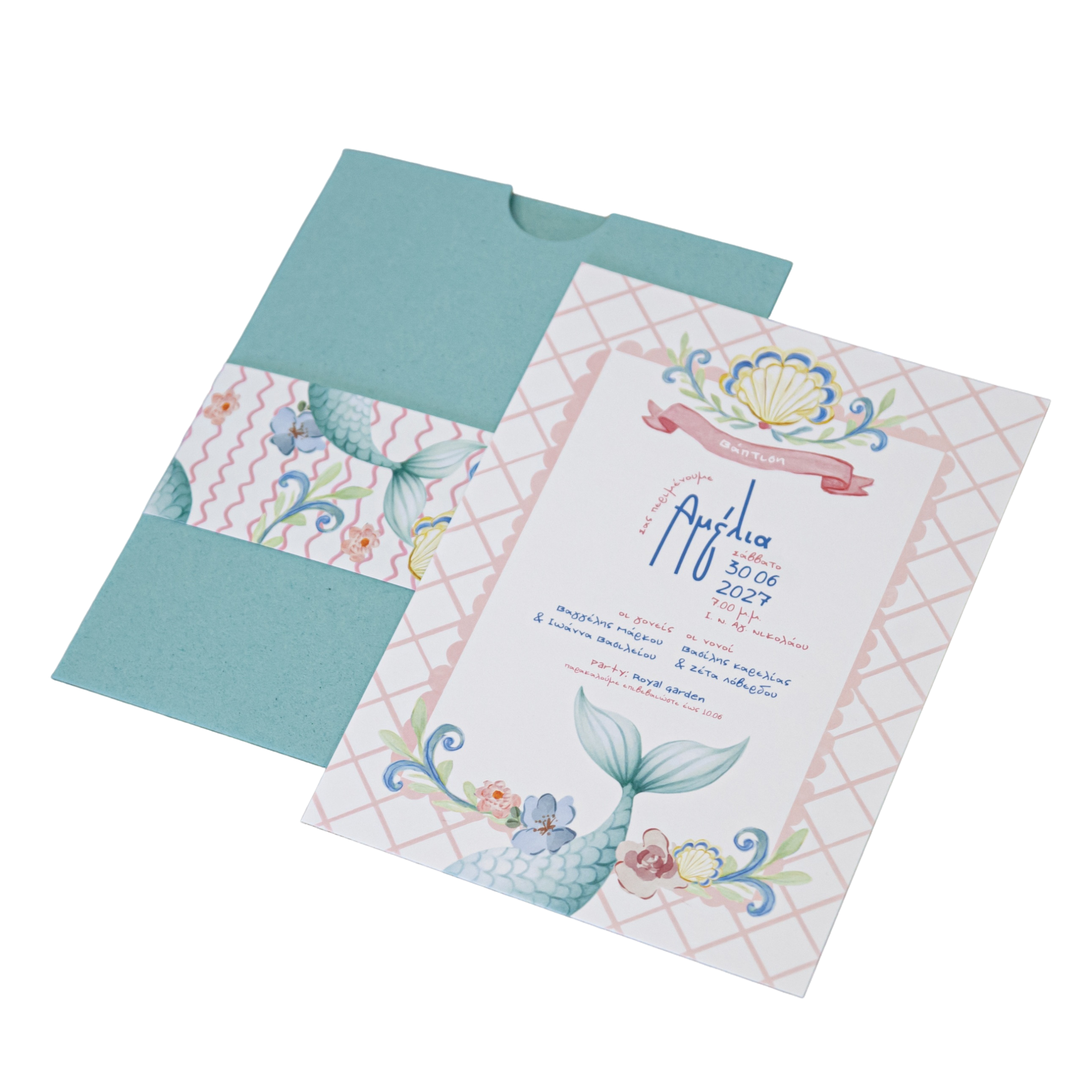 Προσκλητήριο βάπτισης για κορίτσι με θέμα γοργόνα