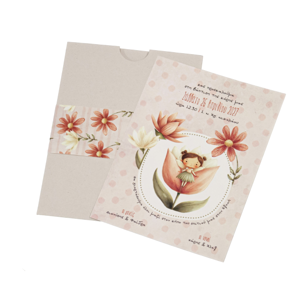 Προσκλητήριο βάπτισης για κορίτσι με θέμα flower girl.