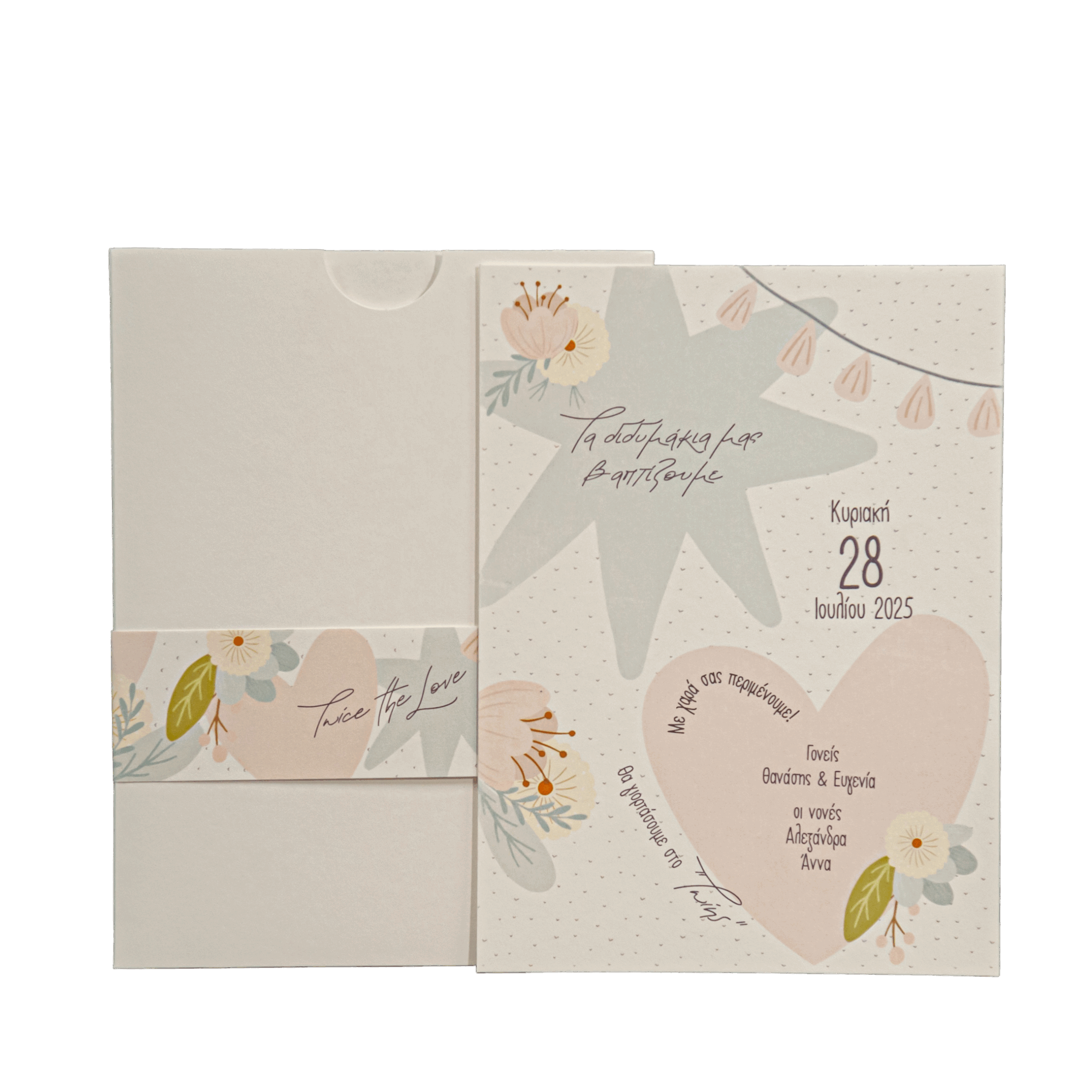 Προσκλητήριο βάπτισης με καρδούλα και αστεράκι