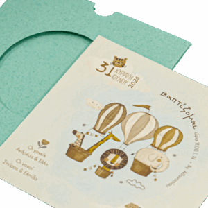 Προσκλητήριο βάπτισης με θέμα αερόστατο με ζωάκια της ζούγκλας