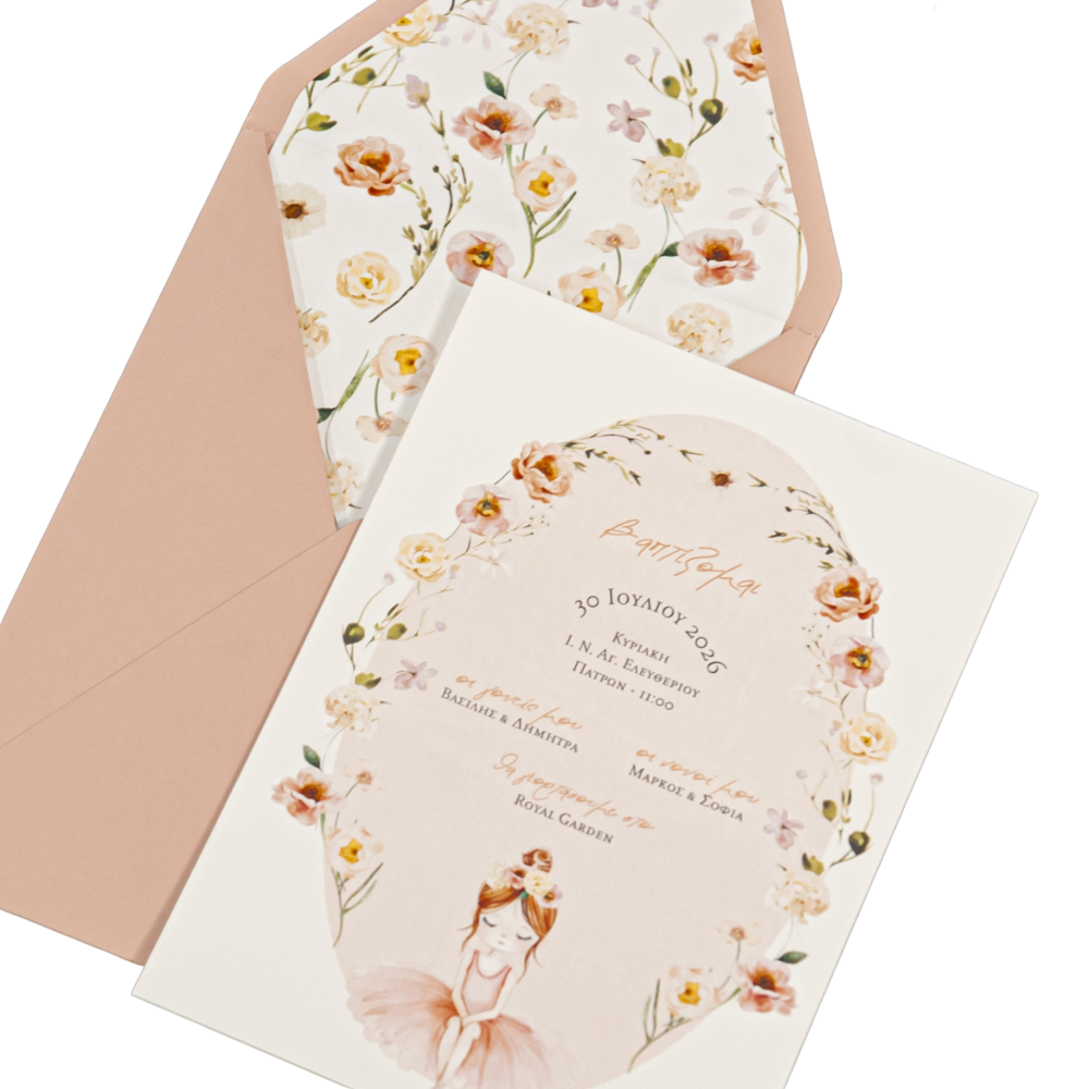 Προσκλητήριο βάπτισης με θέμα μπαλαρίνα