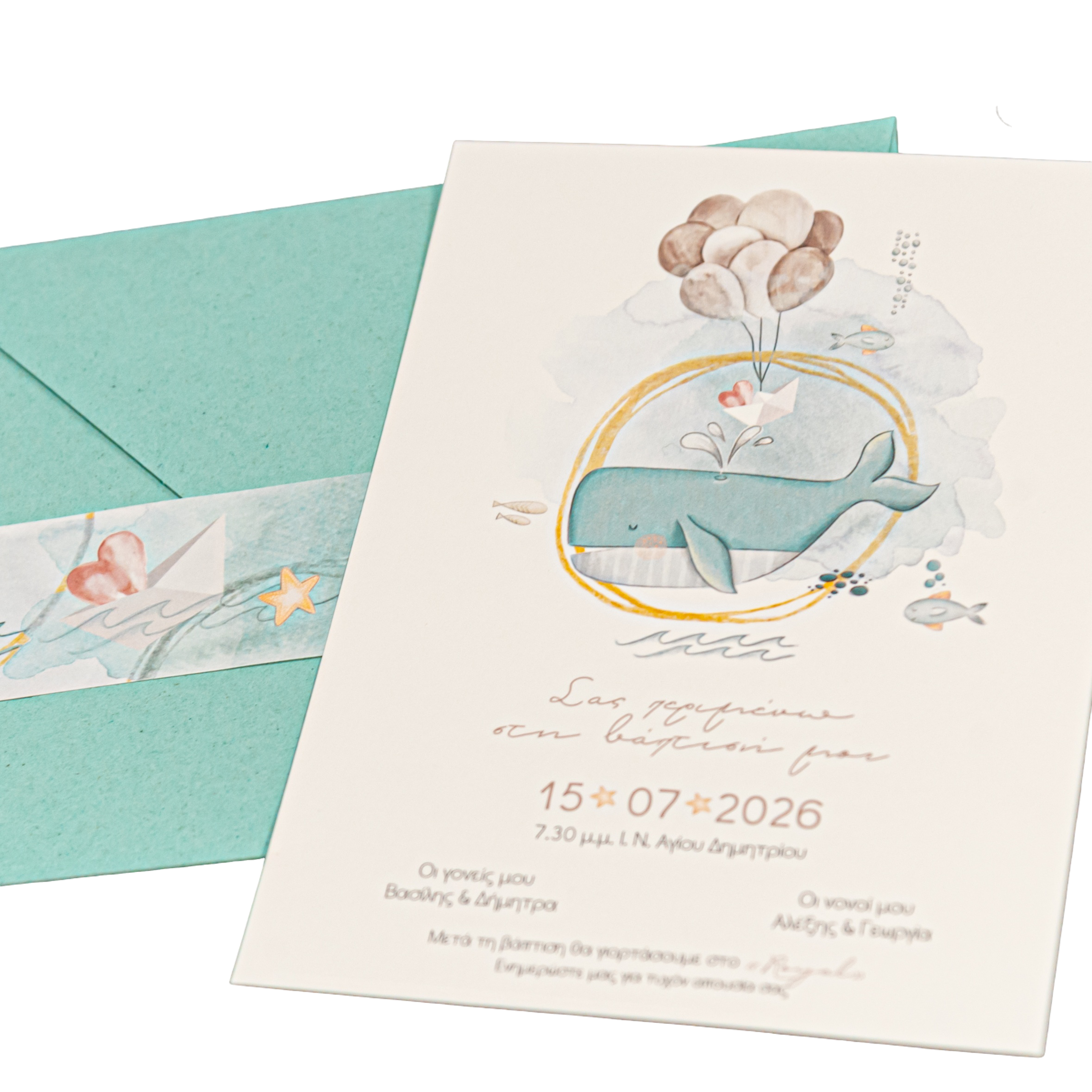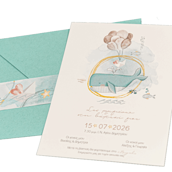 Προσκλητήριο βάπτισης με θέμα φάλαινα