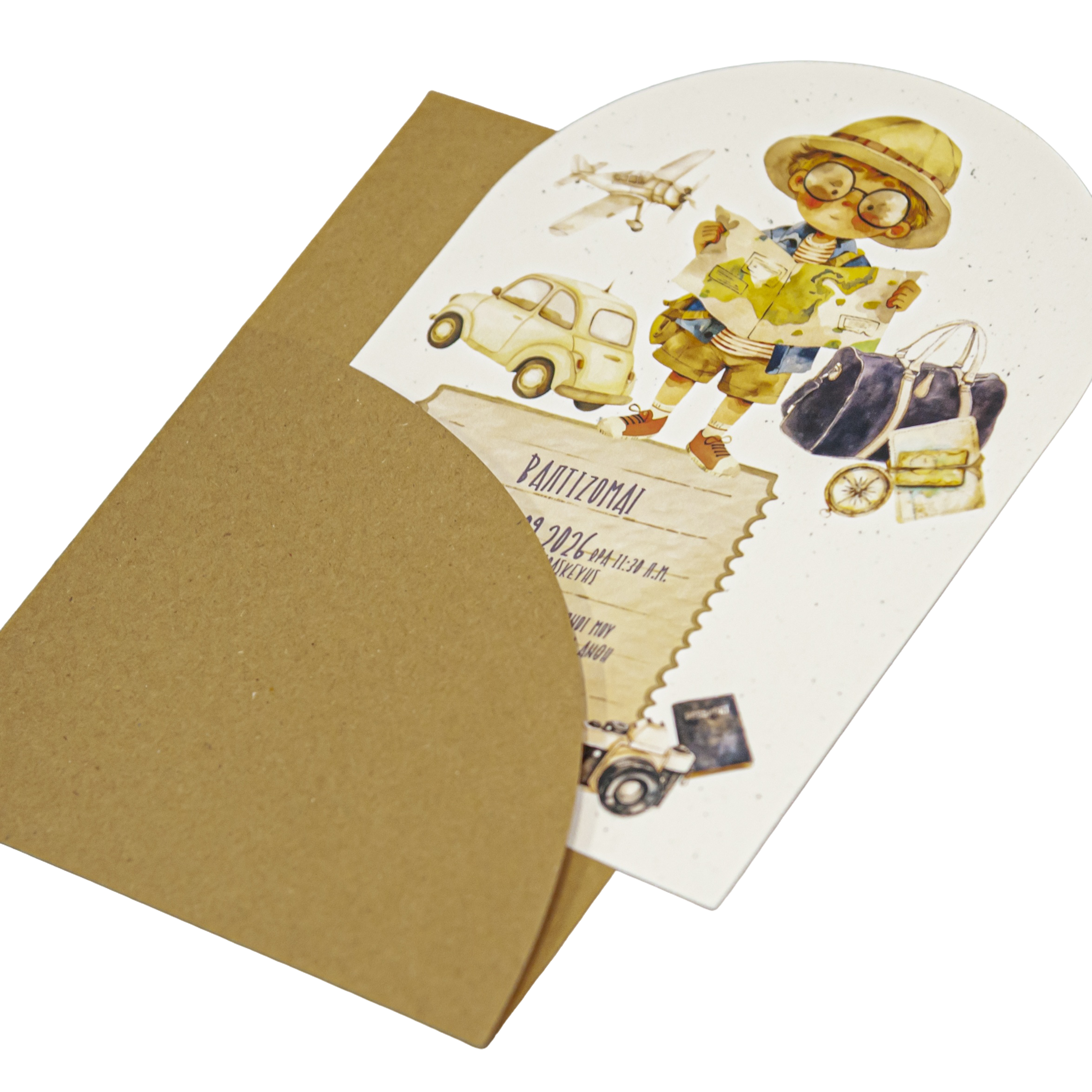 Προσκλητήριο βάπτισης με θέμα μικρός εξερευνητής