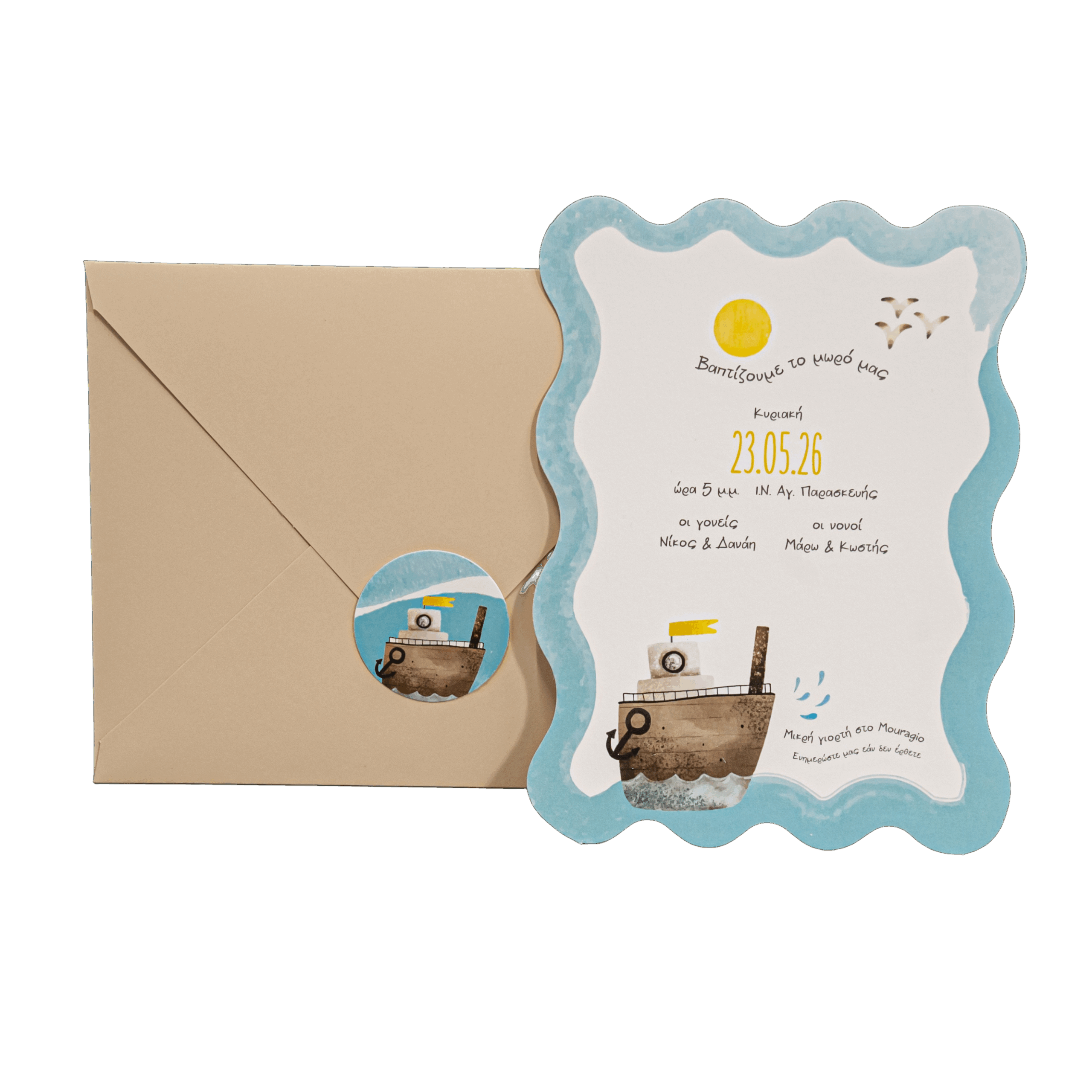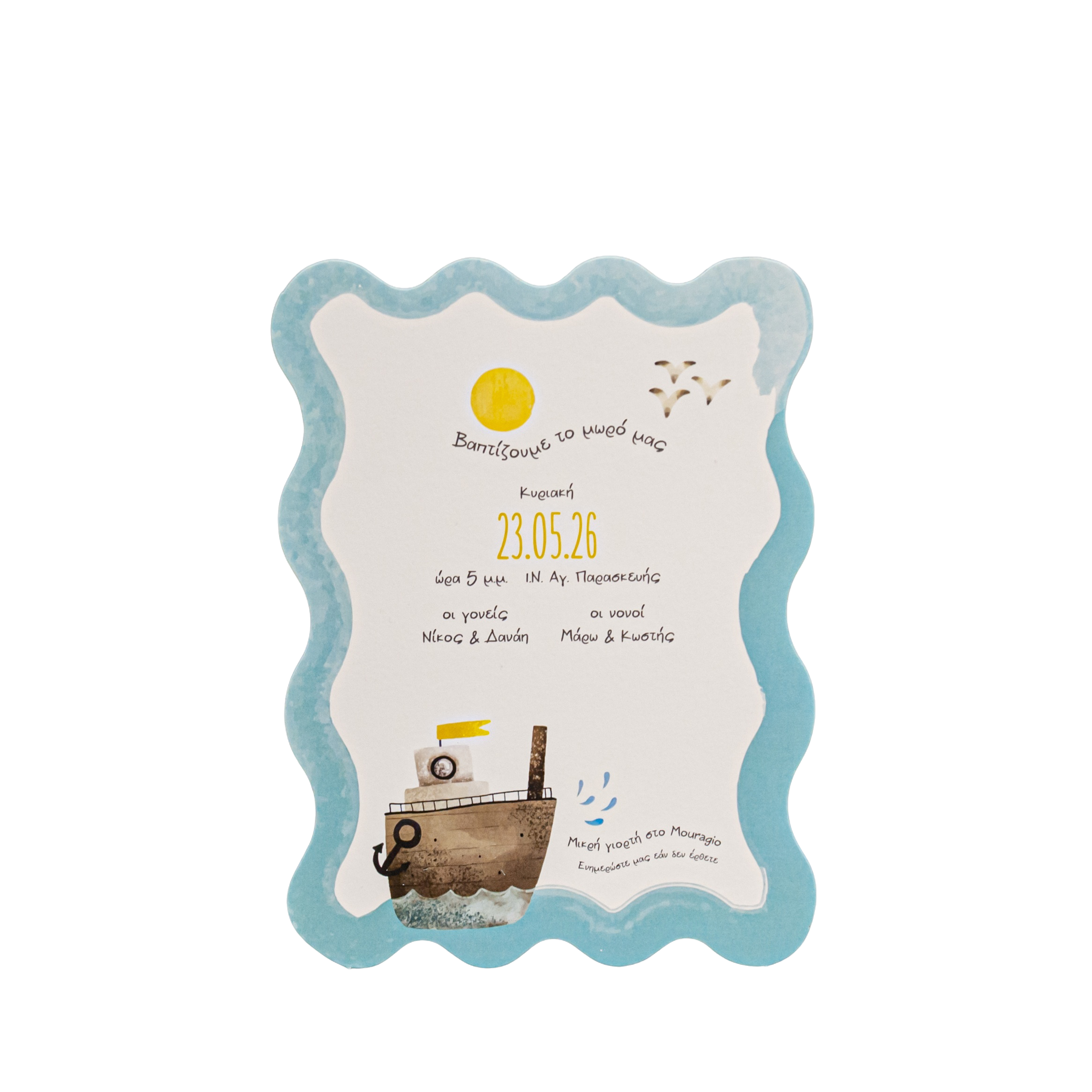Προσκλητήριο βάπτισης με θέμα ναυτικό.