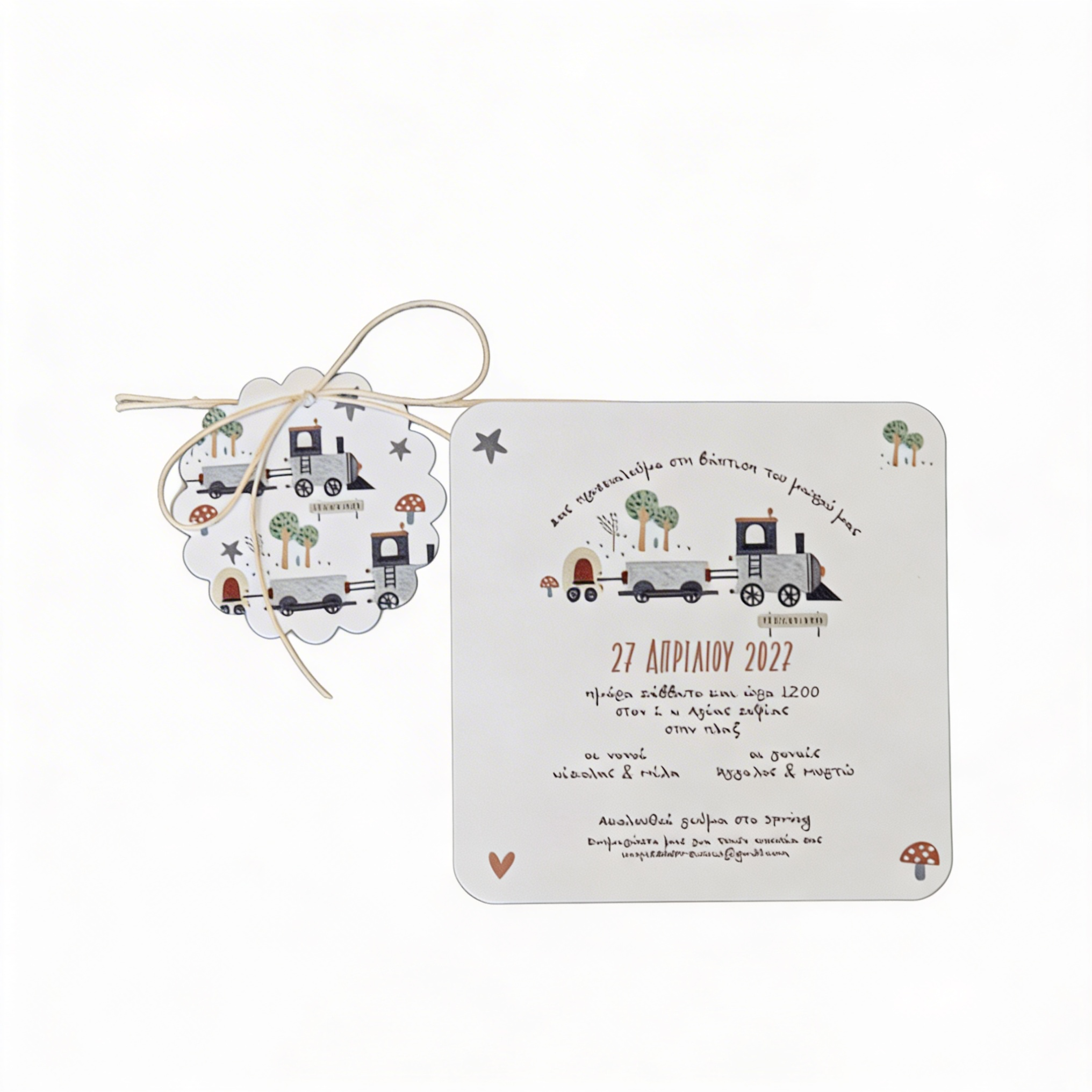 Προσκλητήριο βάπτισης με θέμα τρενάκι