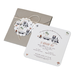 Δημιουργήστε αξέχαστο προσκλητήριο βάπτισης με τρενάκι! Ζωντανά σχέδια, φωτεινά χρώματα και προσωποποιημένο κείμενο για την ξεχωριστή σας μέρα.