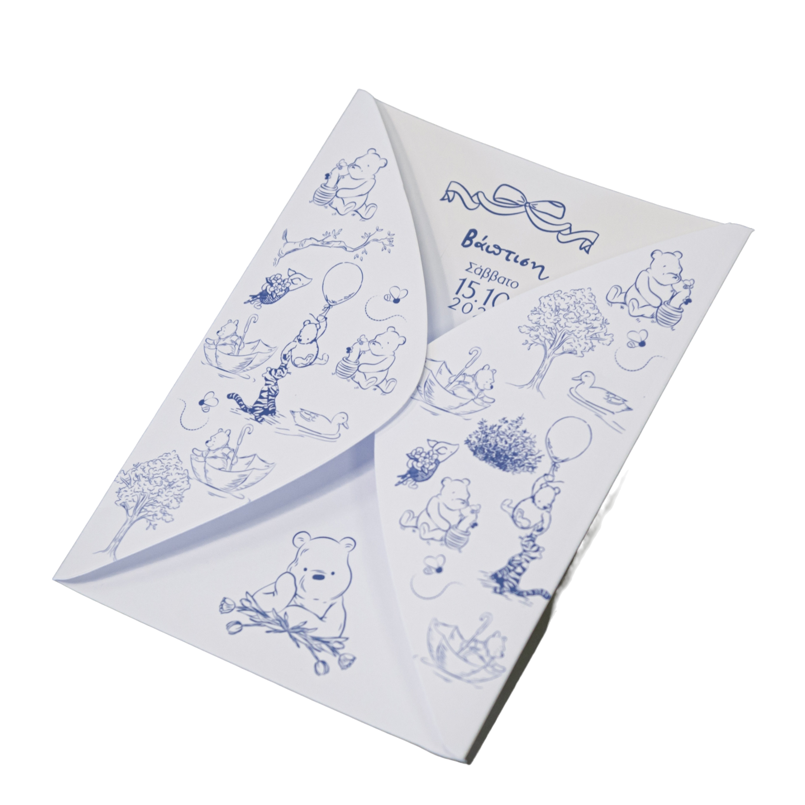 Προσκλητήριο βάπτισης με θέμα winnie the pooh