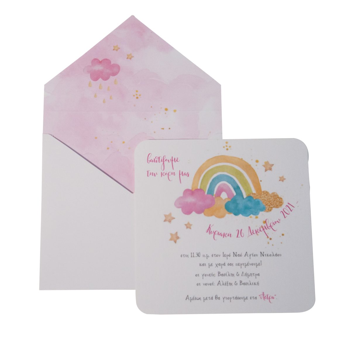 Προσκλητήριο βάπτισης με θέμα το ουράνιο τόξο