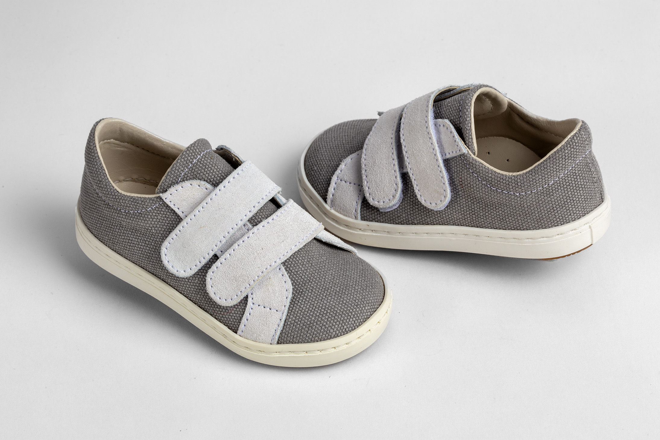 Sneaker περπατήματος σε λευκό καστόρ δέρμα και γκρι καμβά everkid Α535Ρ.