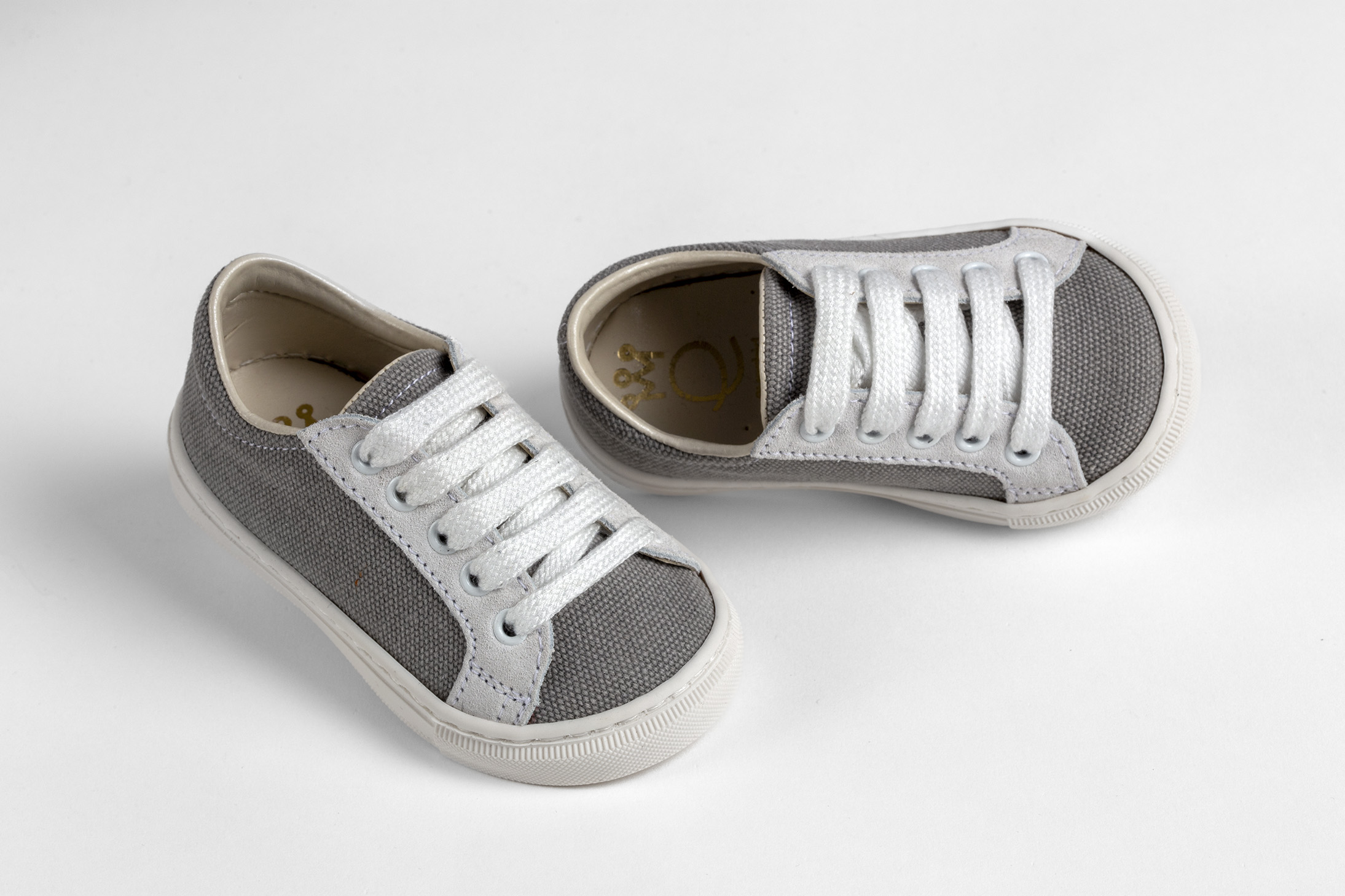 Sneaker περπατήματος σε λευκό δέρμα και γκρι καμβά everkid Α533Ρ.