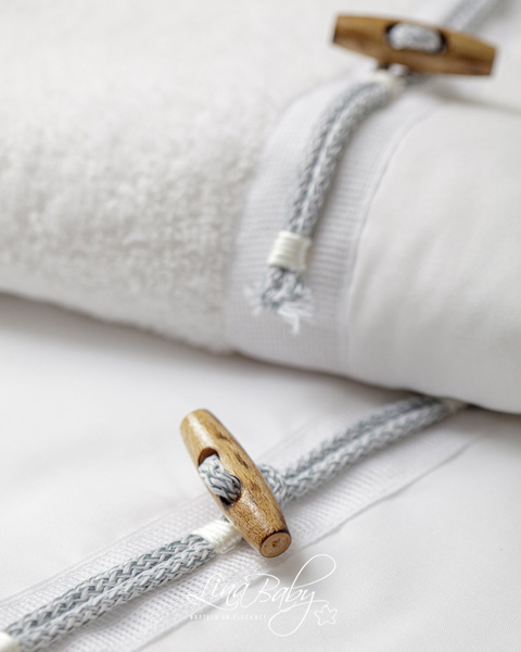 Όμορφο και μοντέρνο βαμβακερό σετ λαδόπανων σε καθαρό λευκό χρώμα, σχεδιασμένο με έμφαση στη διακριτική κομψότητα.